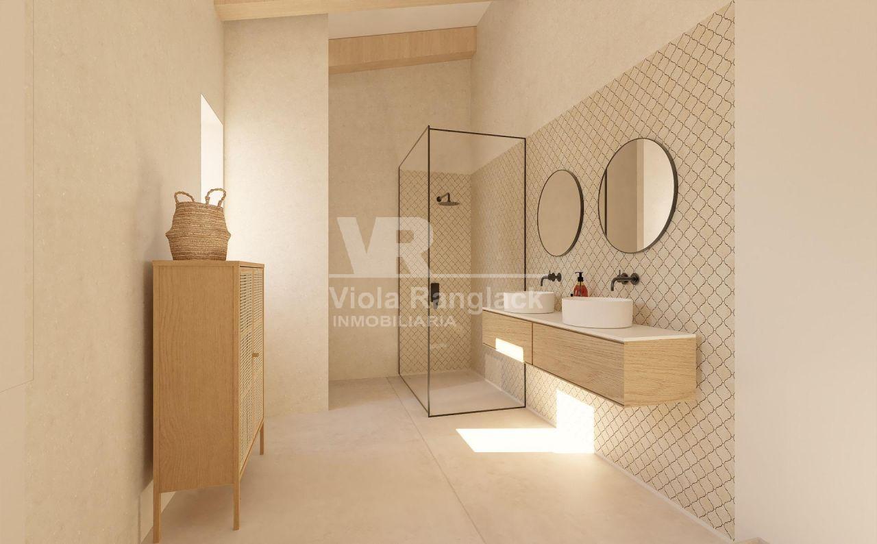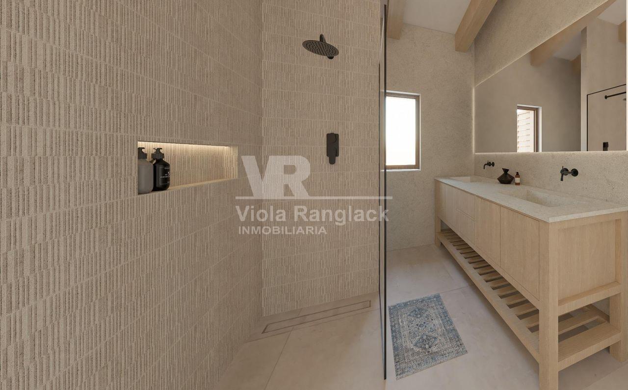 Projekt: Das Haus ist in zwei Ebenen unterteilt, das Erdgeschoss besteht aus 1 Eingangshalle, 1 großes Wohn-Esszimmer von 47 m2, 1 Speisekammer, 1 WC, 1 Waschküche und 1 Schlafzimmer mit Bad en suite.