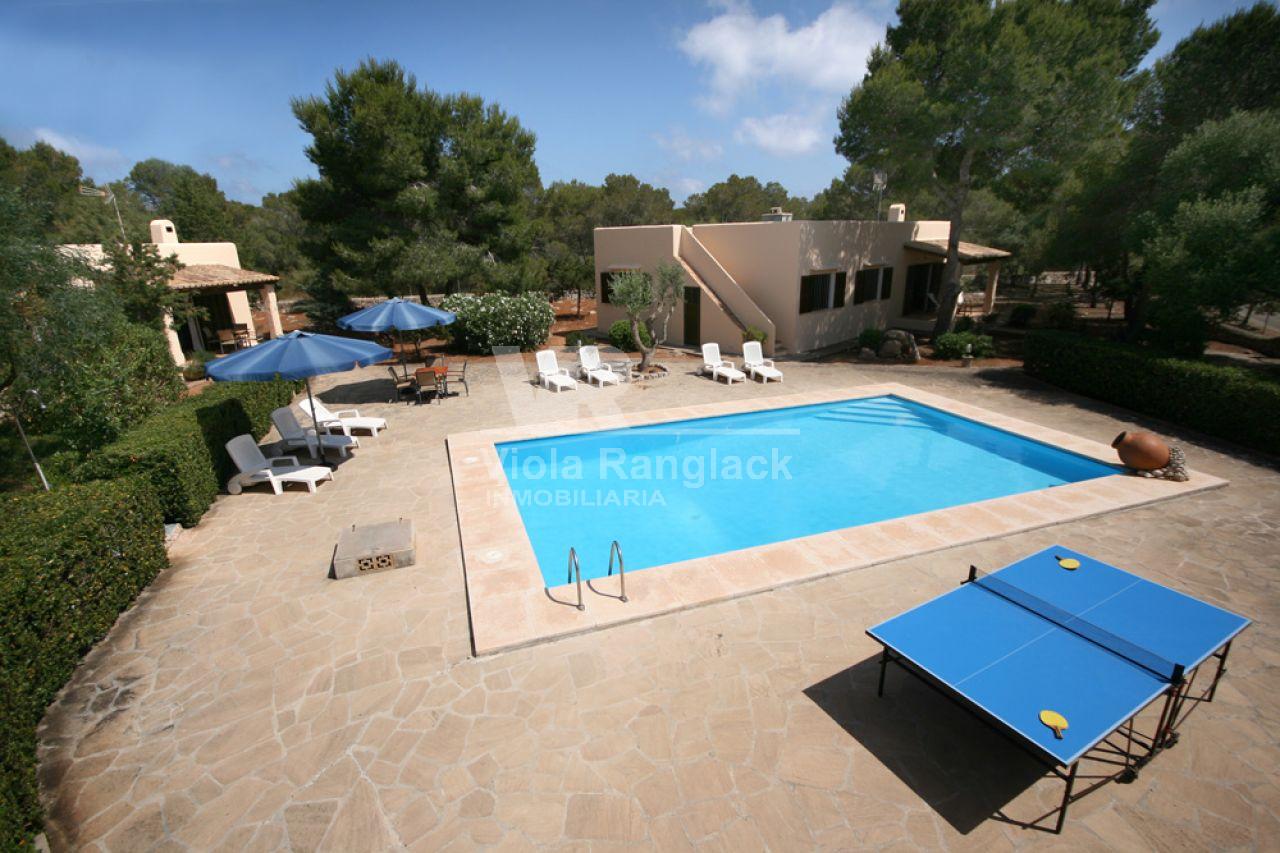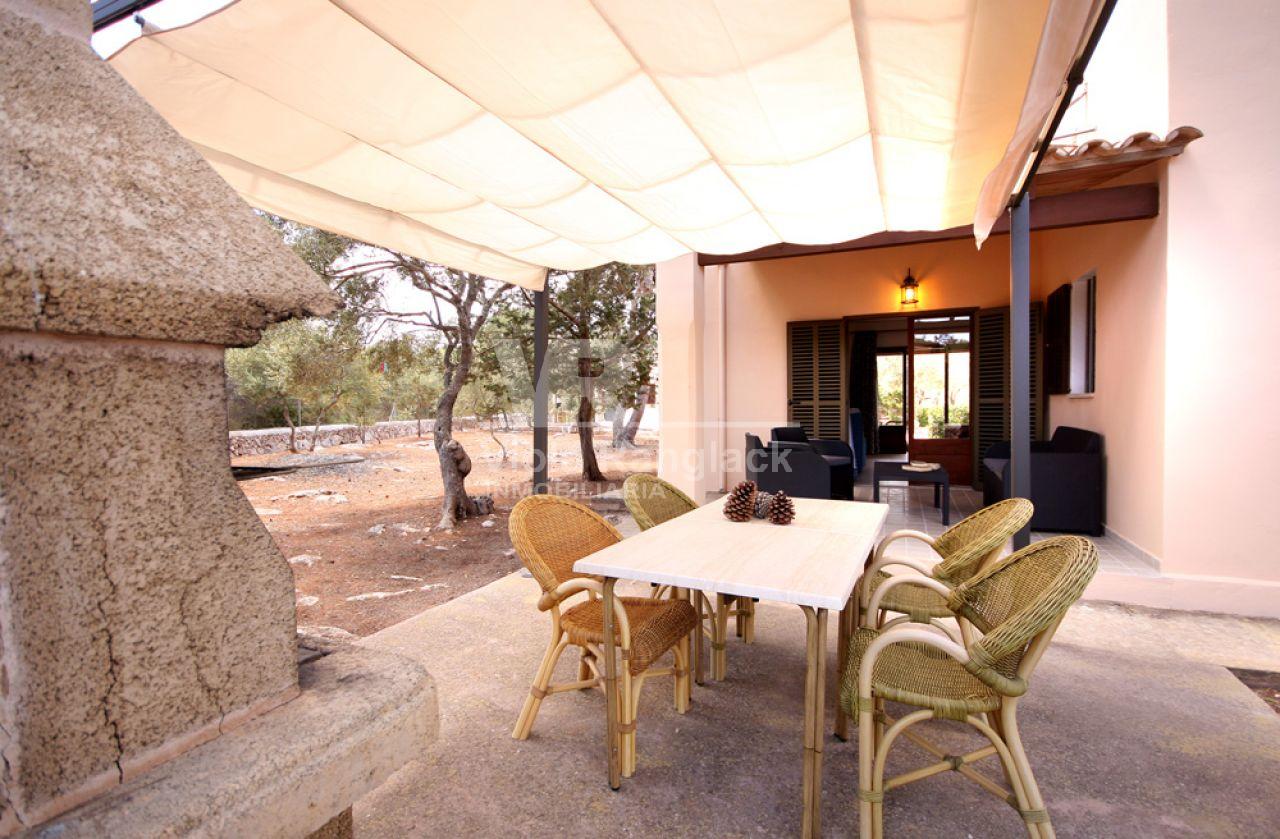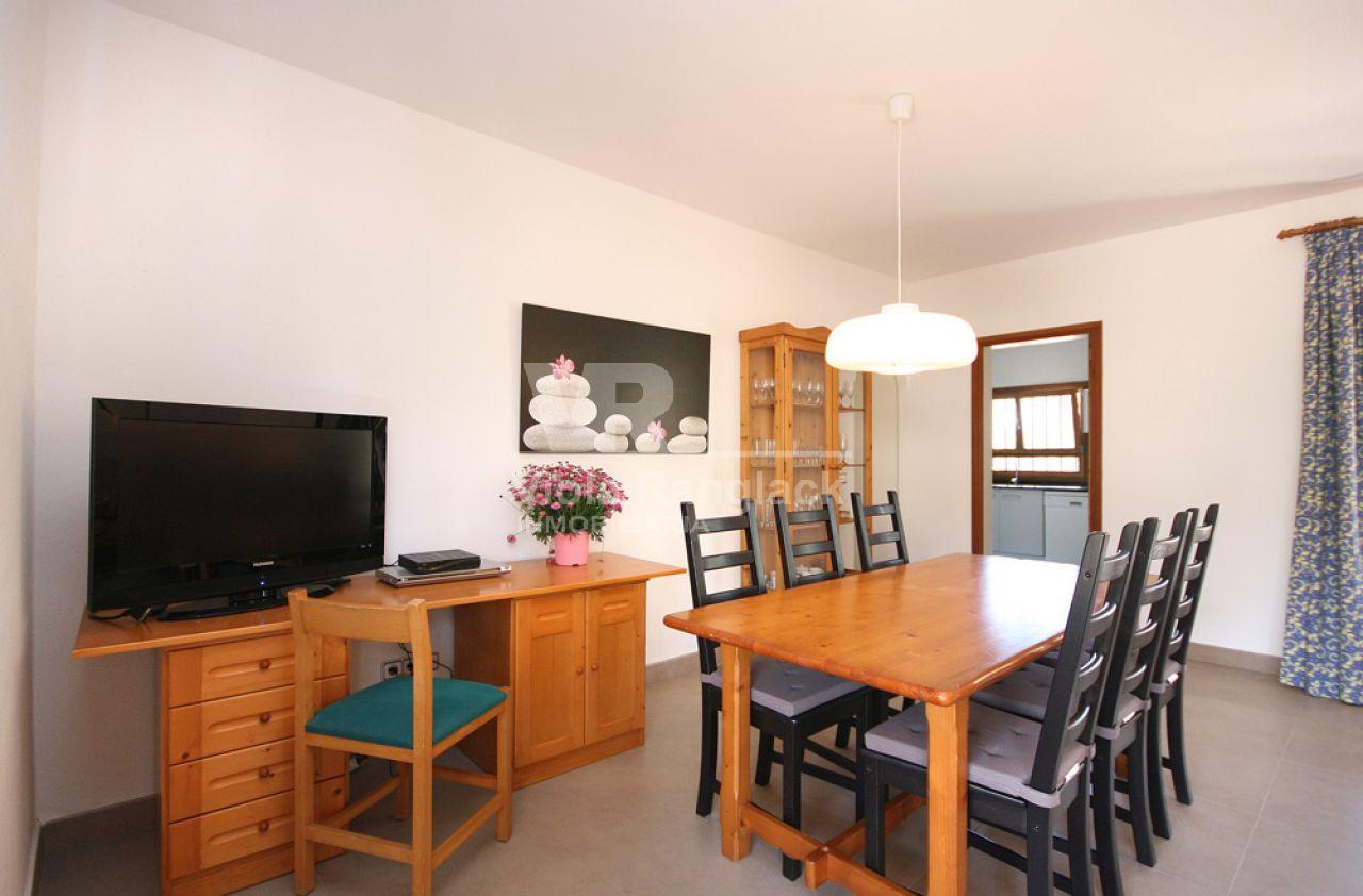 Erdgeschosswohnung in einer Finca in der nahe von Portopetro. Die Wohnung wurde kürzlich renoviert und verfügt über 110m2 Wohnfläche auf einem Grundstück von 4500m2, mit Gemeinschaftsgarten und Pool sowie einer weiteren Wohnung. Das Haus verfügt über 3 Doppelzimmer, 1 Badezimmer mit Dusche, 1 Außentoilette, eine voll möblierte und ausgestattete Küche und ein großes Wohnzimmer. Es hat auch eine private Terrasse mit eingebautem Grill.