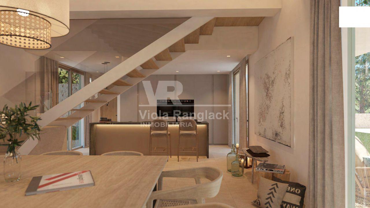 On the ground floor of approx. 191,40 m2 we enter through a hall, from which we access to a living-dining room and an open kitchen with a laundry room.