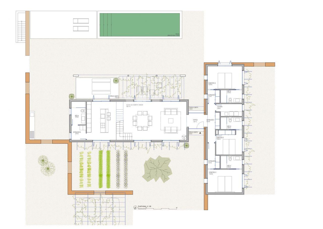 The swimming pool is approx 31.20m2. In the outside area there is a semi-covered parking for 2 cars and a storage room.