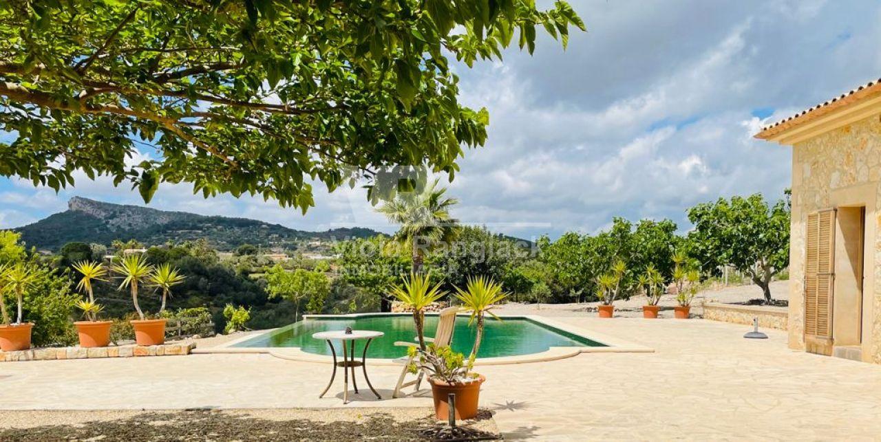 Finca con carácter y estilo mallorquín, con vistas panorámicas al mar y a la montaña, situada en las afueras de Manacor en s´Espinagar, cerca de Calas de Mallorca.