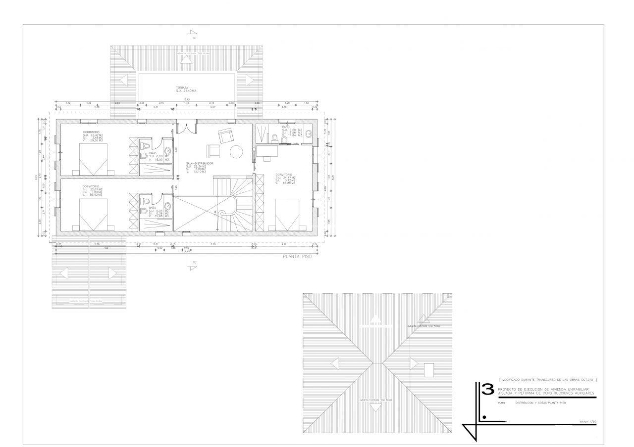 En la primera planta de 154.80m2 hay salita/distribuidor con salida a una terraza de 18m2 y 3 dormitorios con baño en suit .