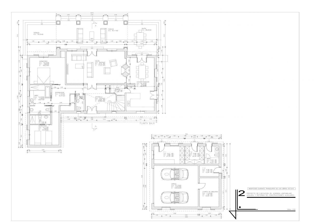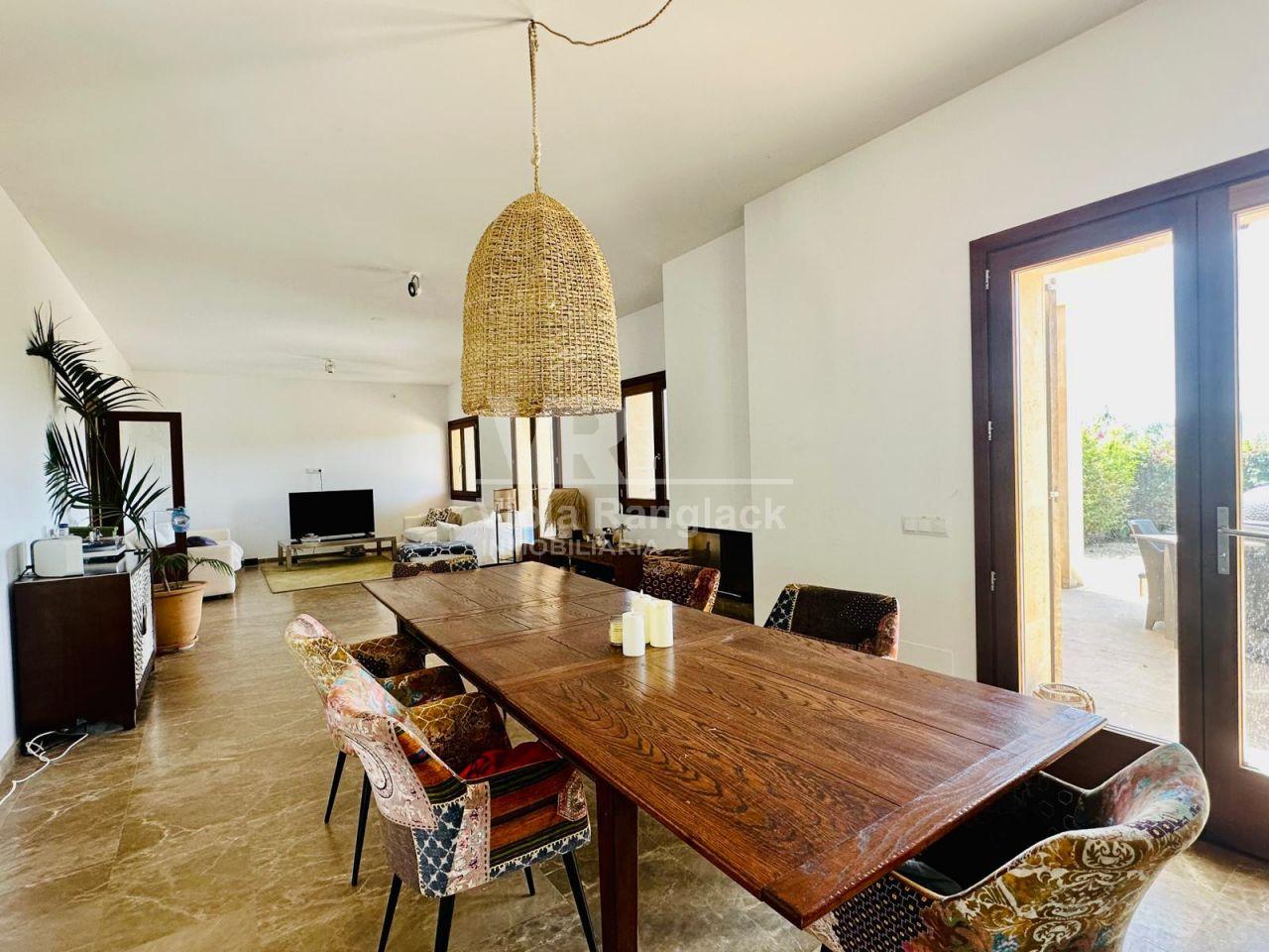 Planta baja de 203.20m2 distribuidos en gran entrada/recibidor, cocina americana de diseño totalmente equipada abierta al comedor, sala de estar, salón, aseo, distribuidor, 2 dormitorios con salidas al exterior, 2 baños completos (uno en suit y uno con bañera y ducha). Porche de 20m2 y terraza de unos 18m2.