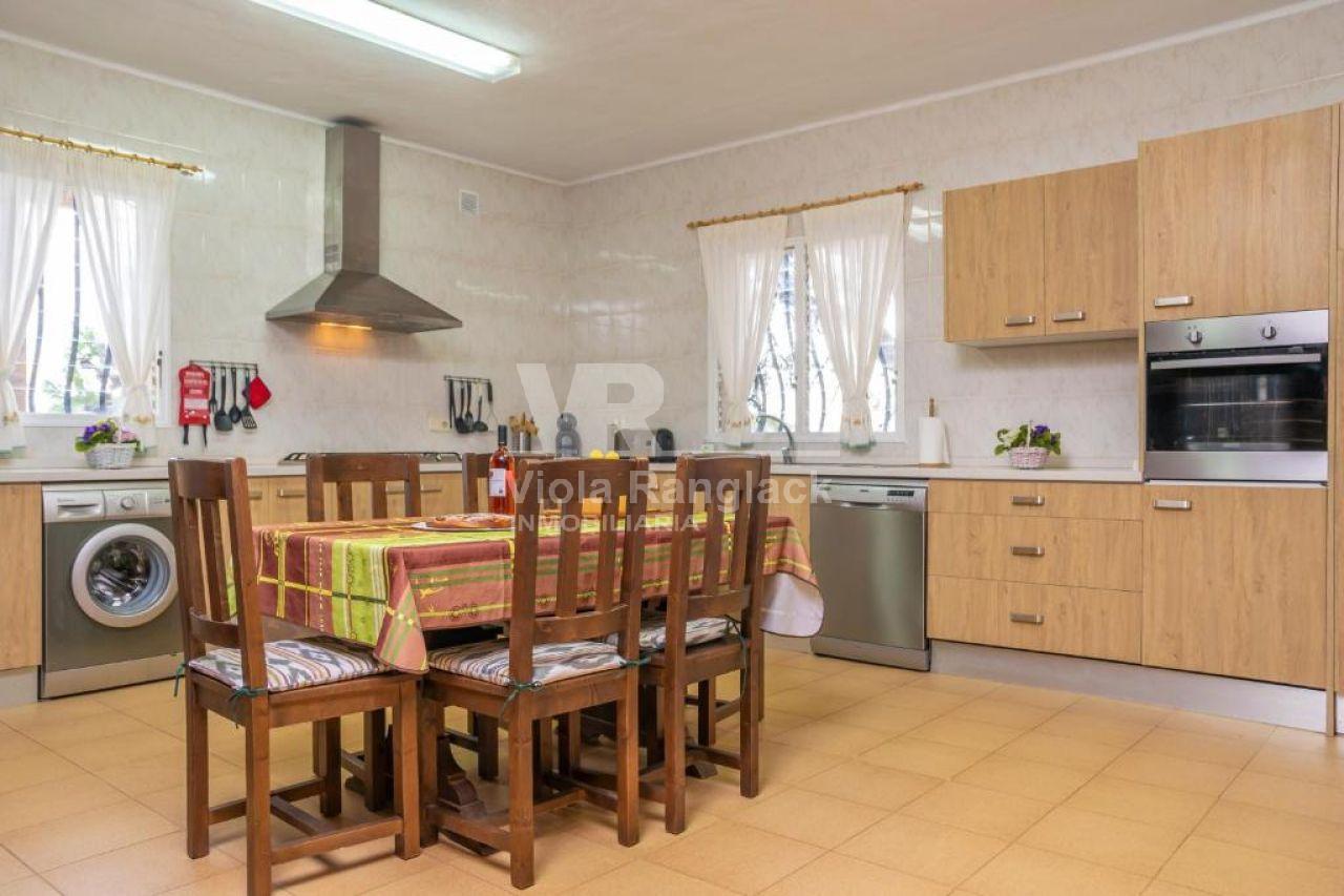 La cocina tiene aproximadamente unos 40 m2 y está amueblada y equipada. Tiene despensa y coladuría.