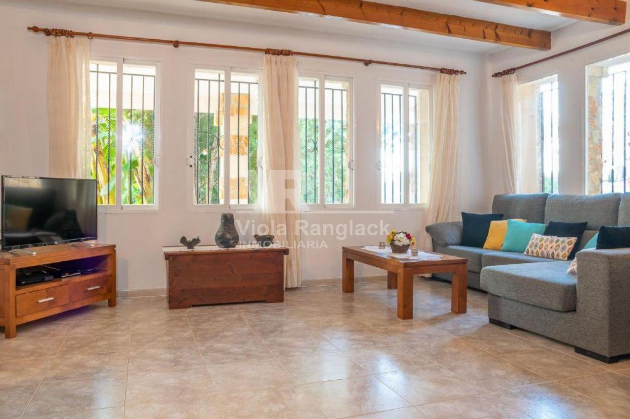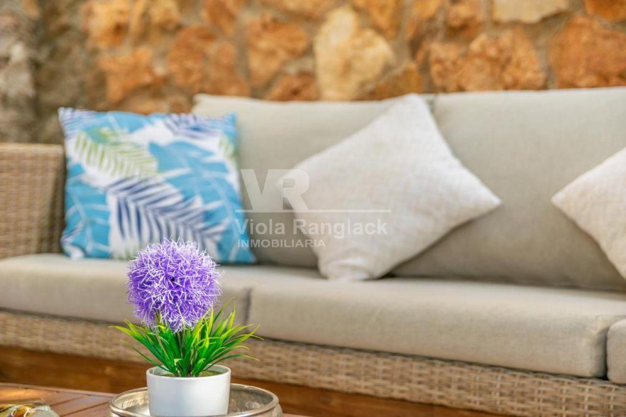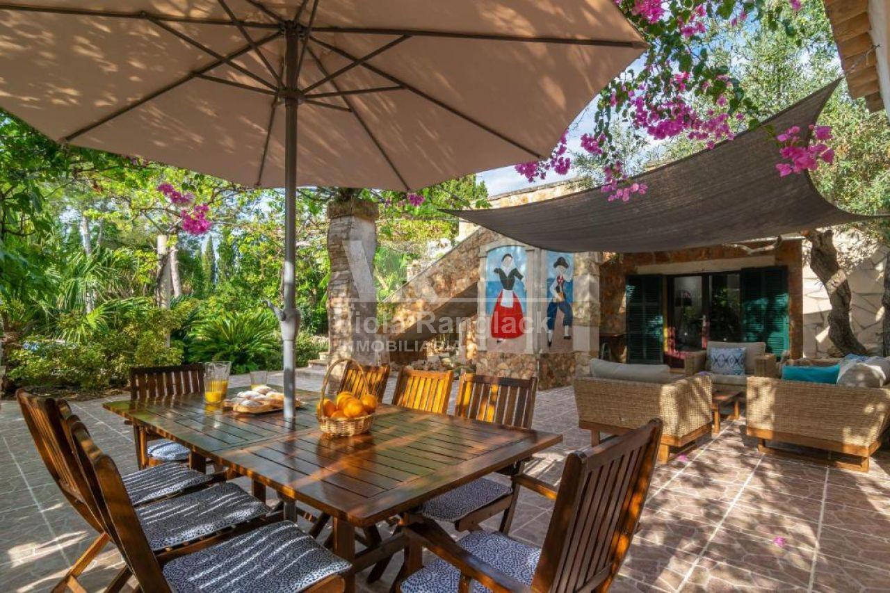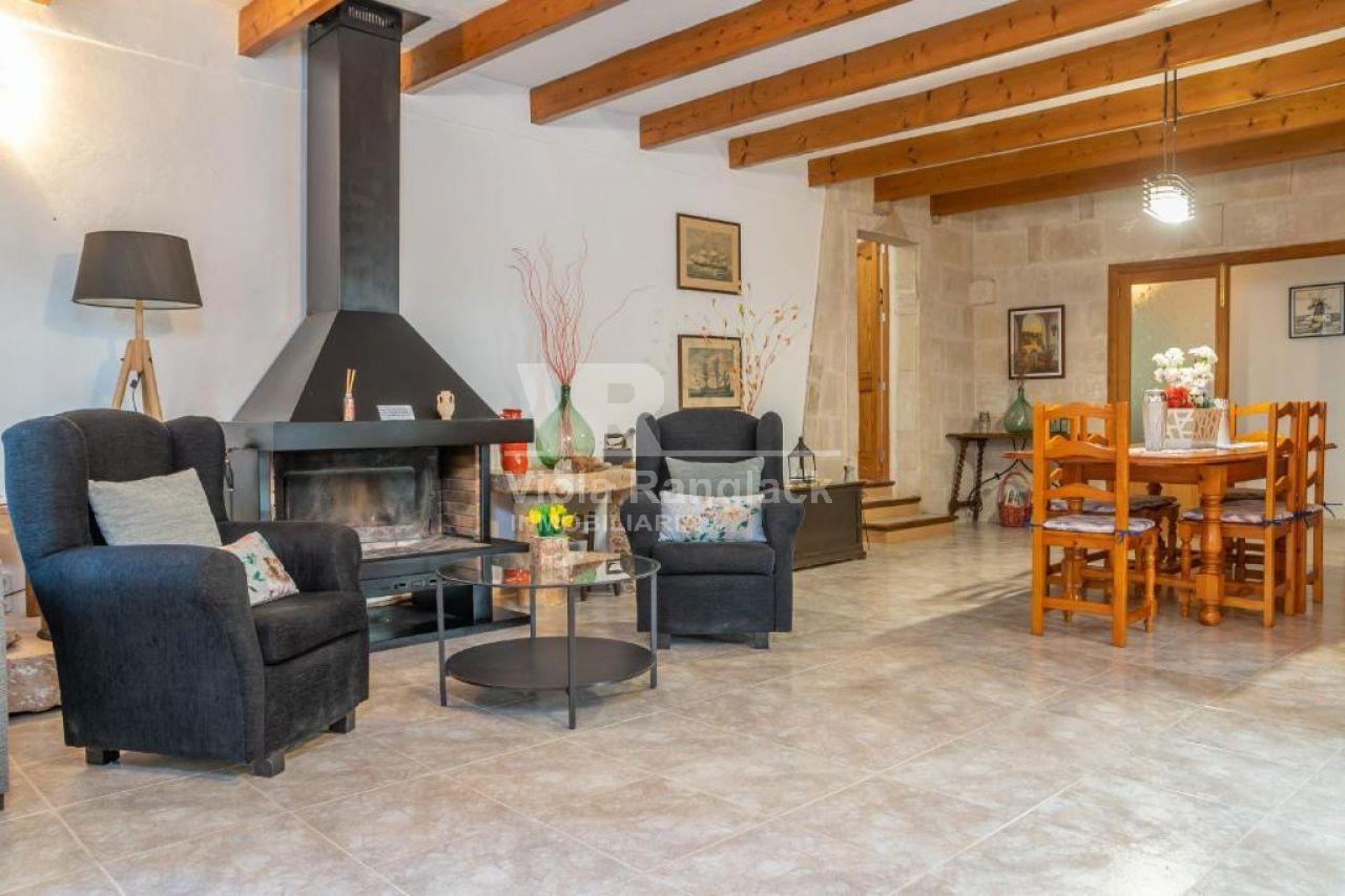Espaciosa villa de estilo Mallorquín y forrada de piedra , de unos 240m2. Está ubicada a pocos mts de la playa de cala Marçal y Portocolom.