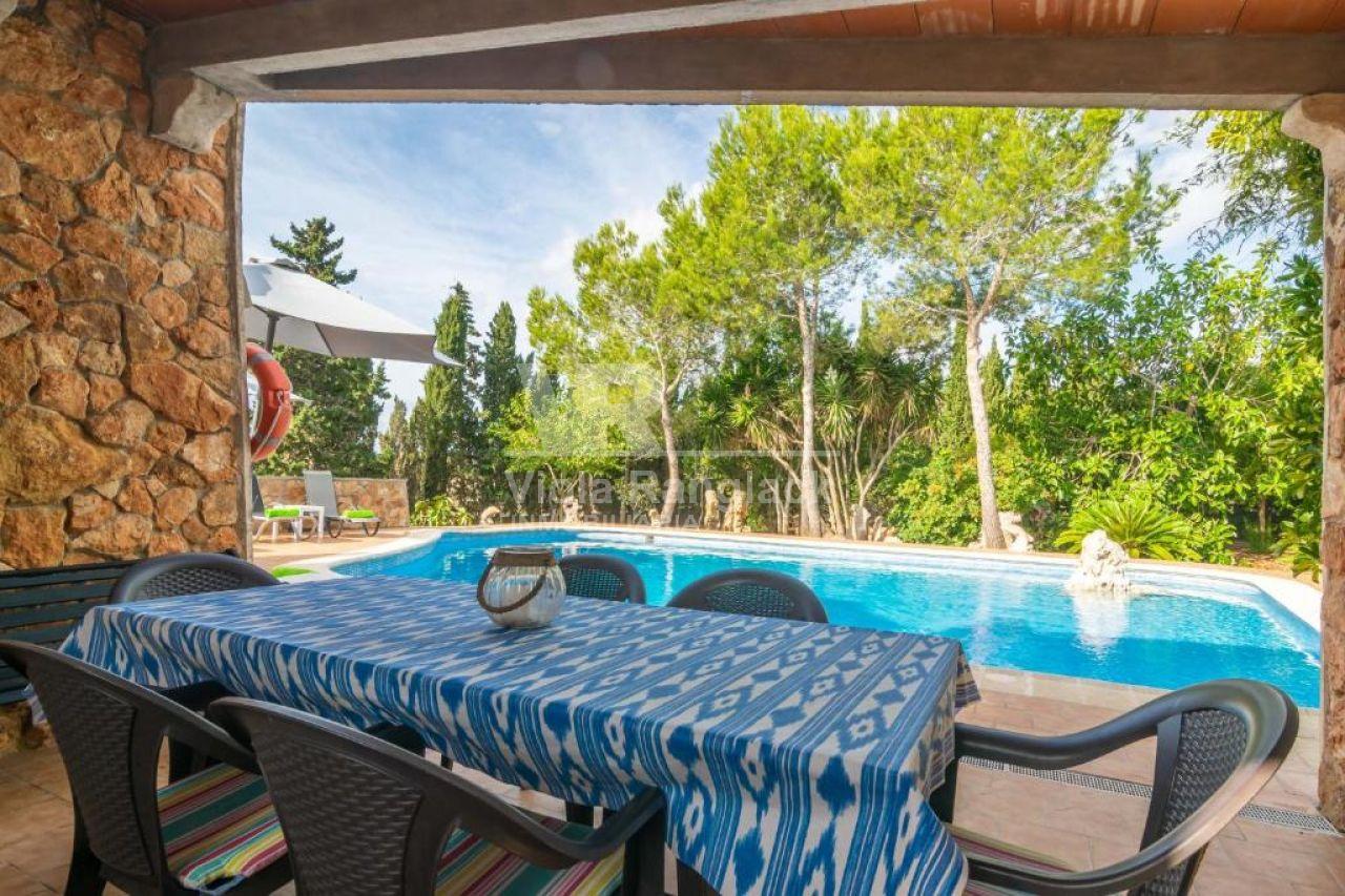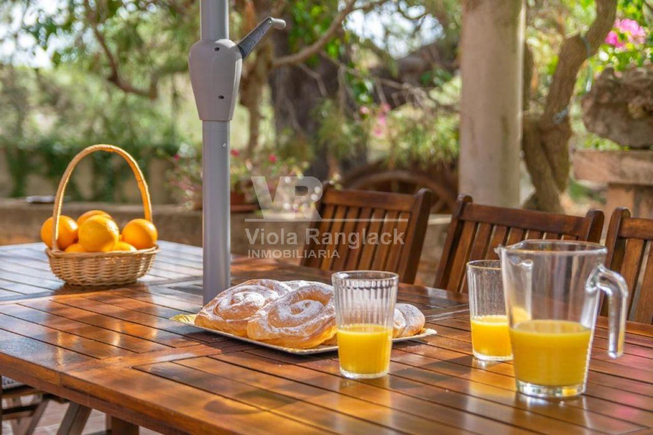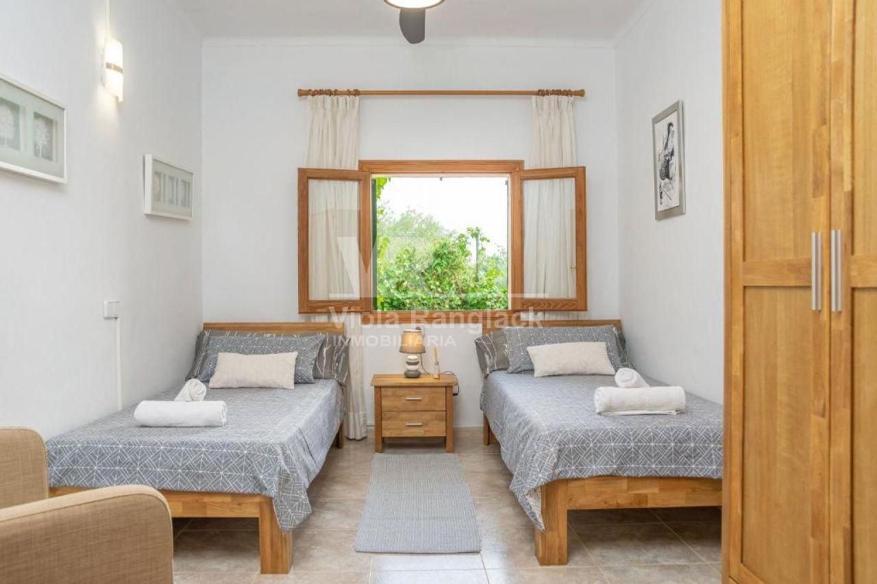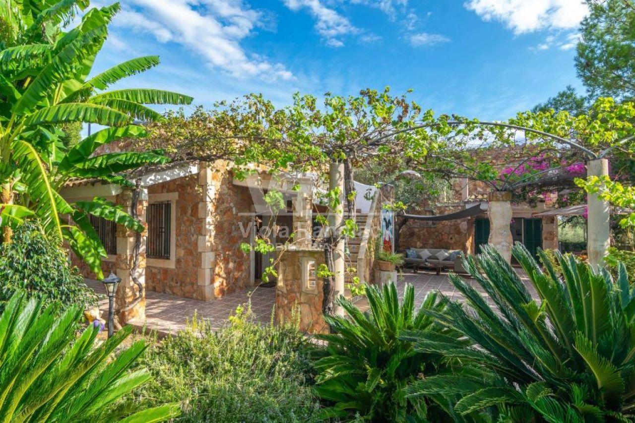 Espaciosa villa de estilo Mallorquín y forrada de piedra , de unos 240m2. Está ubicada a pocos mts de la playa de cala Marçal y Portocolom.