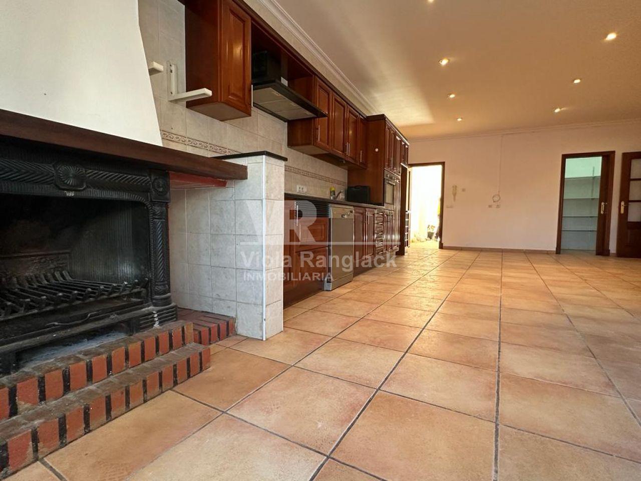 Tiene una gran cocina abierta a un salón comedor con chimenea.