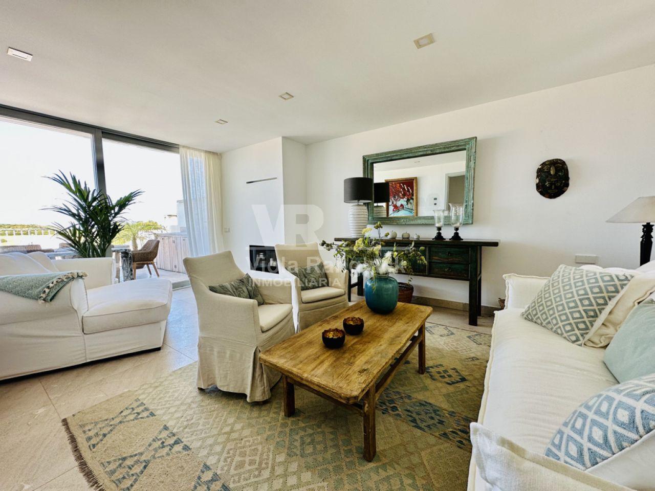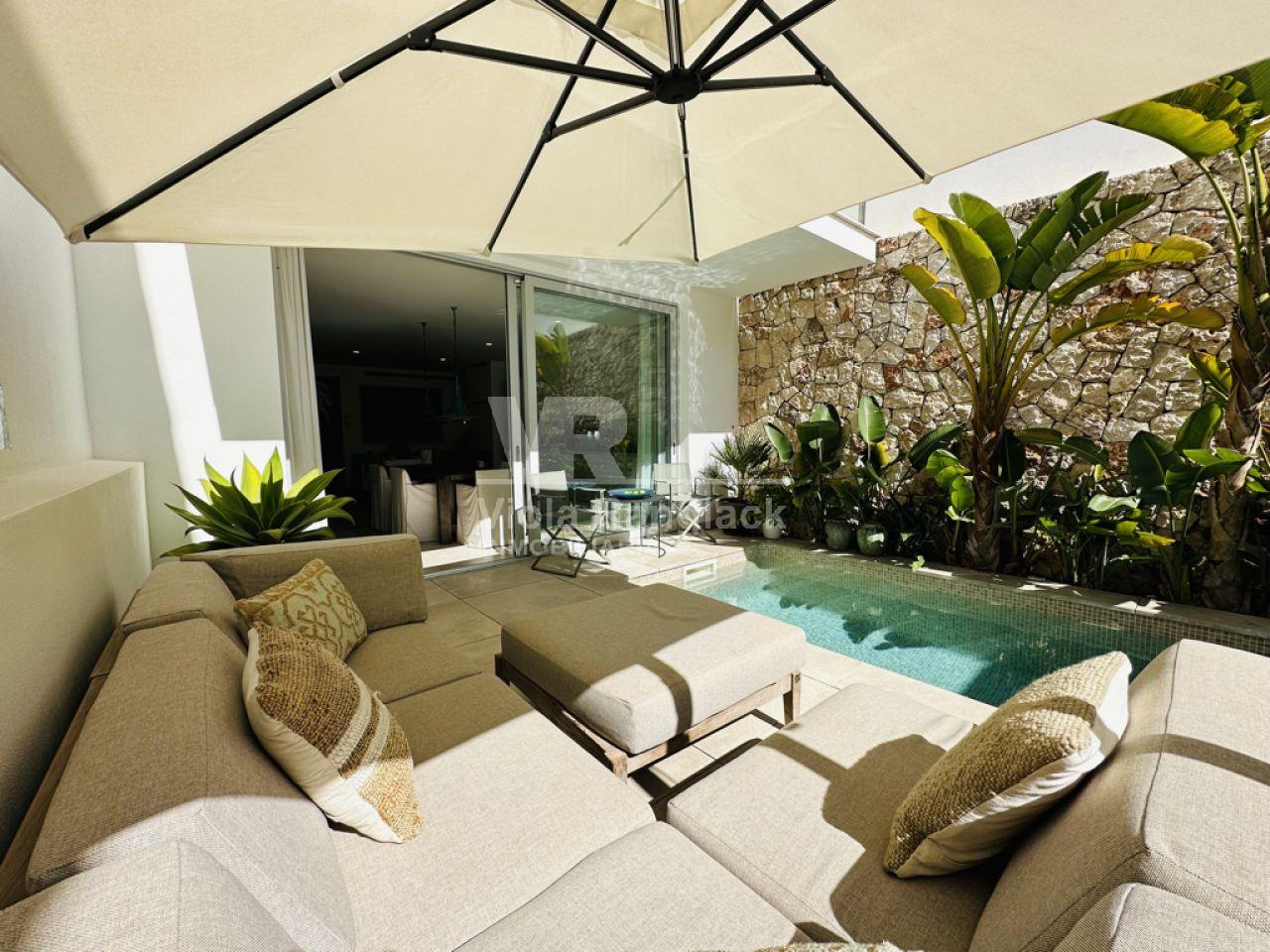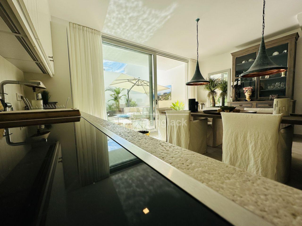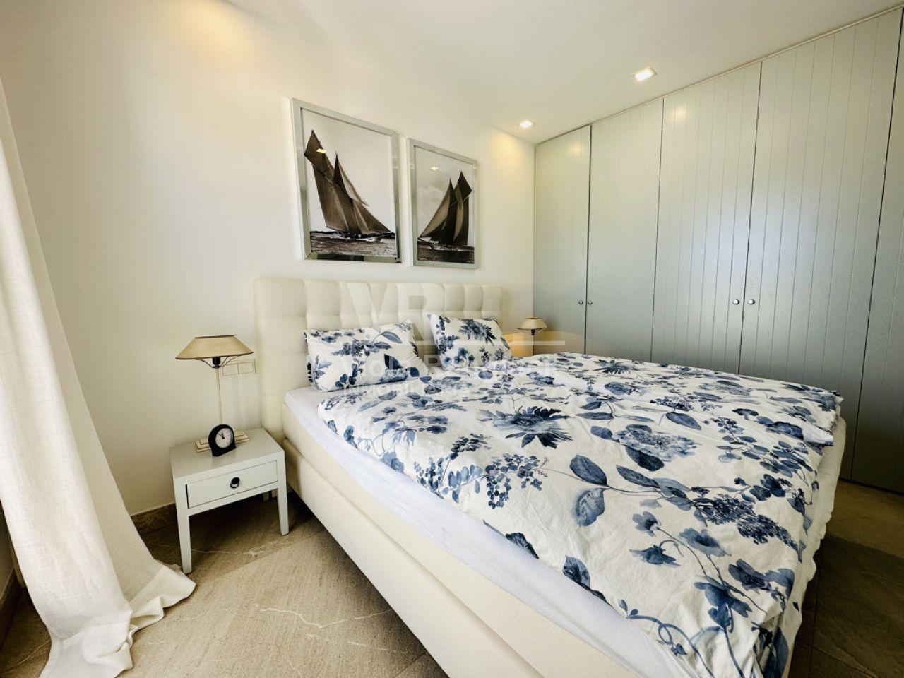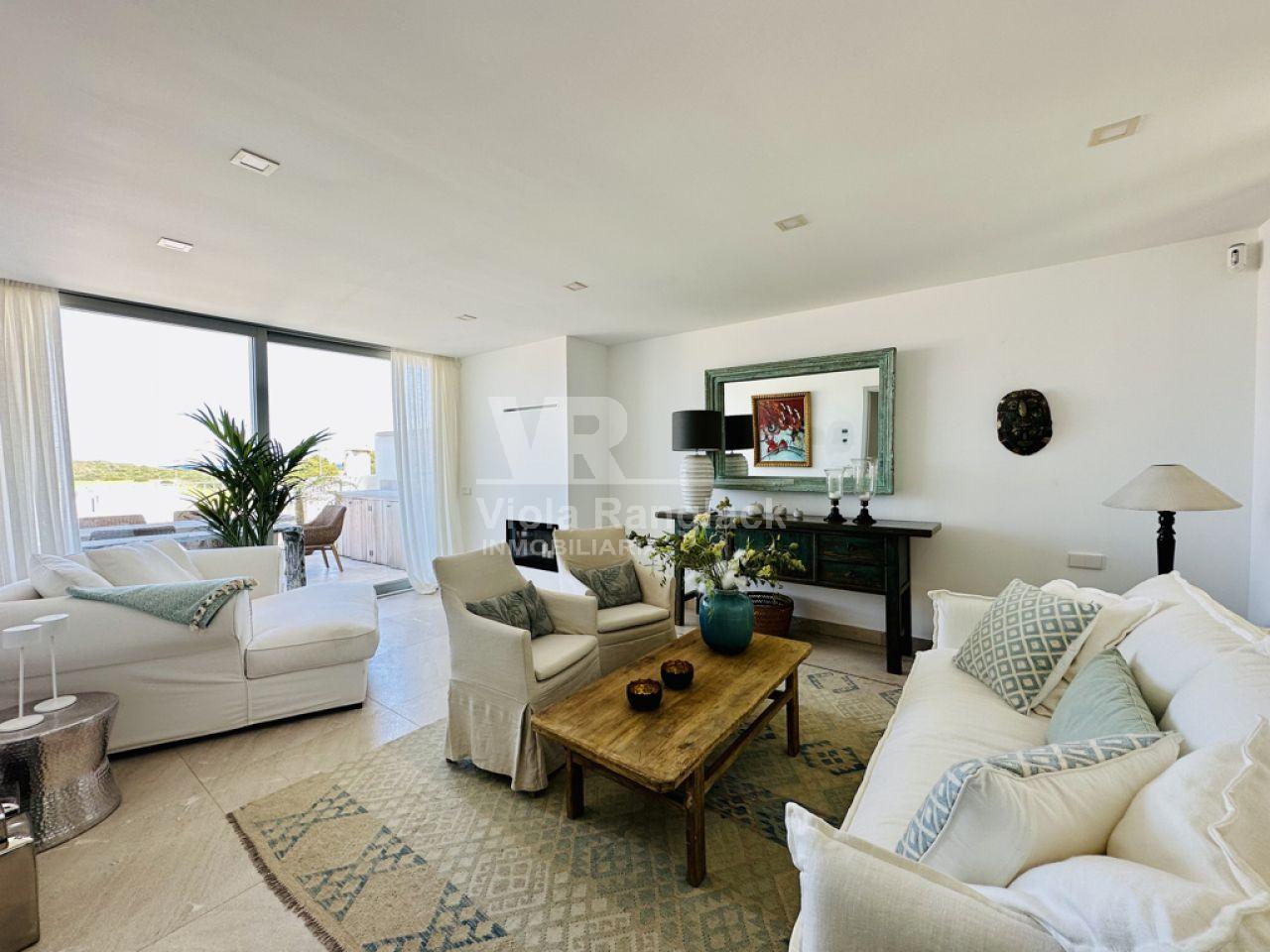 Las escaleras conducen a la primera planta, donde hay dos amplios dormitorios dobles con armarios empotrados. Uno de ellos tiene un moderno cuarto de baño en-suite. Un segundo cuarto de baño también se encuentra en esta planta. Uno de los dormitorios dobles tiene un balcón con vistas al patio. La escalera conduce a la segunda planta, donde se encuentra el amplio salón con una acogedora zona de estar y chimenea. Aquí, también, grandes ventanales conducen a una terraza desde la que se puede disfrutar de una fantástica vista de toda la zona de Portocolom. Esta habitación también se puede convertir en un tercer dormitorio. Otra escalera conduce a la azotea, desde donde la vista es aún más espectacular.