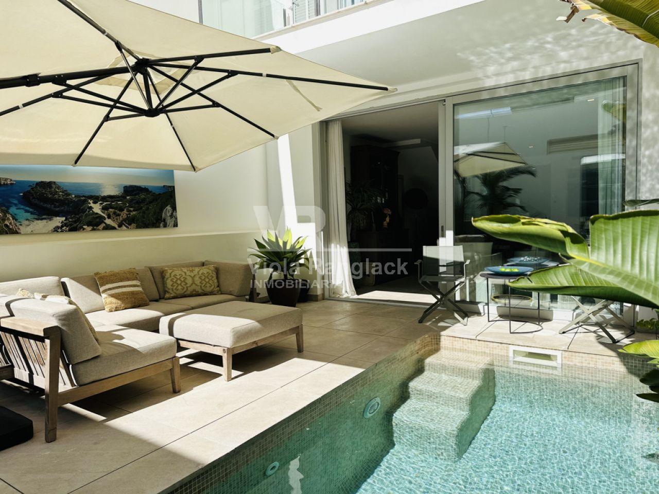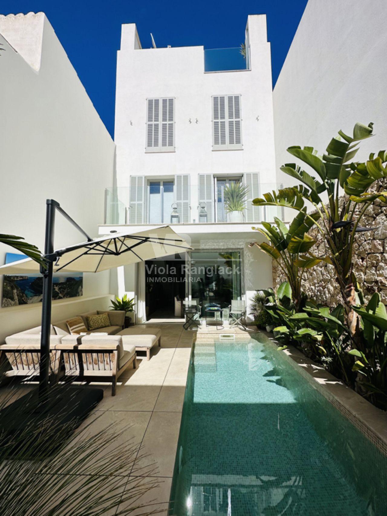 En el casco antiguo de Portocolom, a pocos minutos a pie del mar, se encuentra esta casa de pueblo en el sureste de Mallorca, de nueva construcción en 2016.