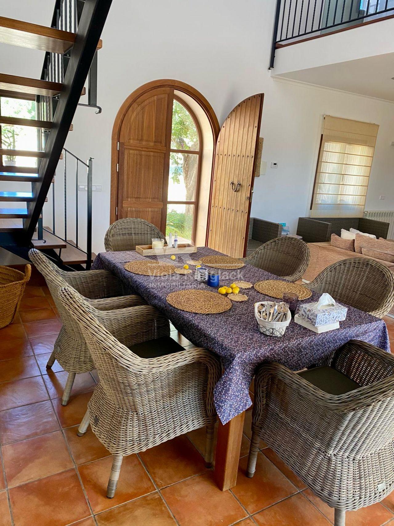 Cuando se accede a la piscina de 5x 8 m ,desde el salón de la planta baja, se llega a través de un porche acondicionado con una zona chill out, el lugar perfecto para disfrutar de los atardeceres de verano.