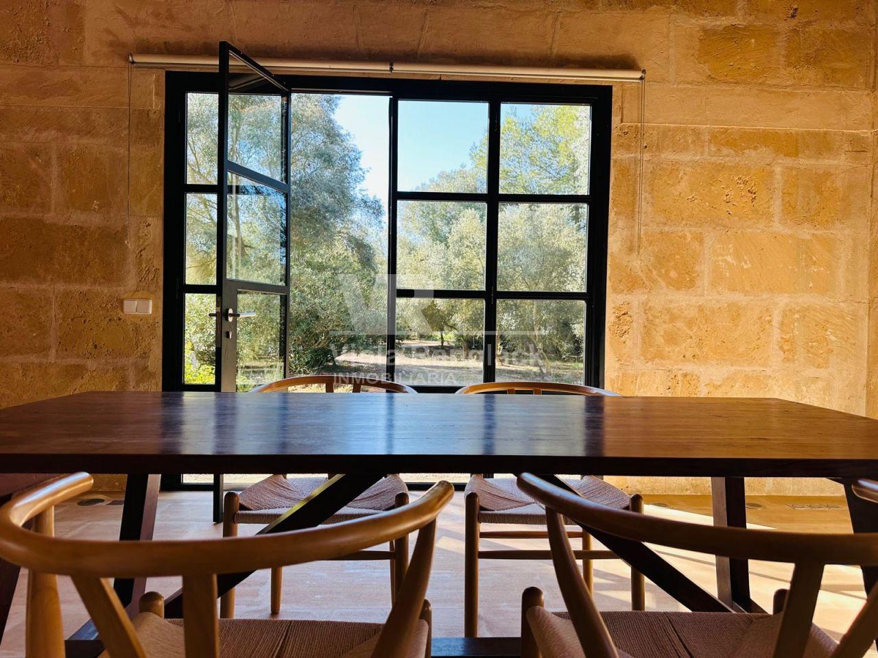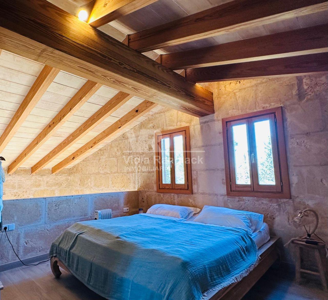 En todas las edificaciones se han conservado materiales nobles típicos mallorquines, como baldosas de terracota, piedra de marés, madera y vigas vistas, con terminaciones limpias que generan un ambiente cálido y acogedor.