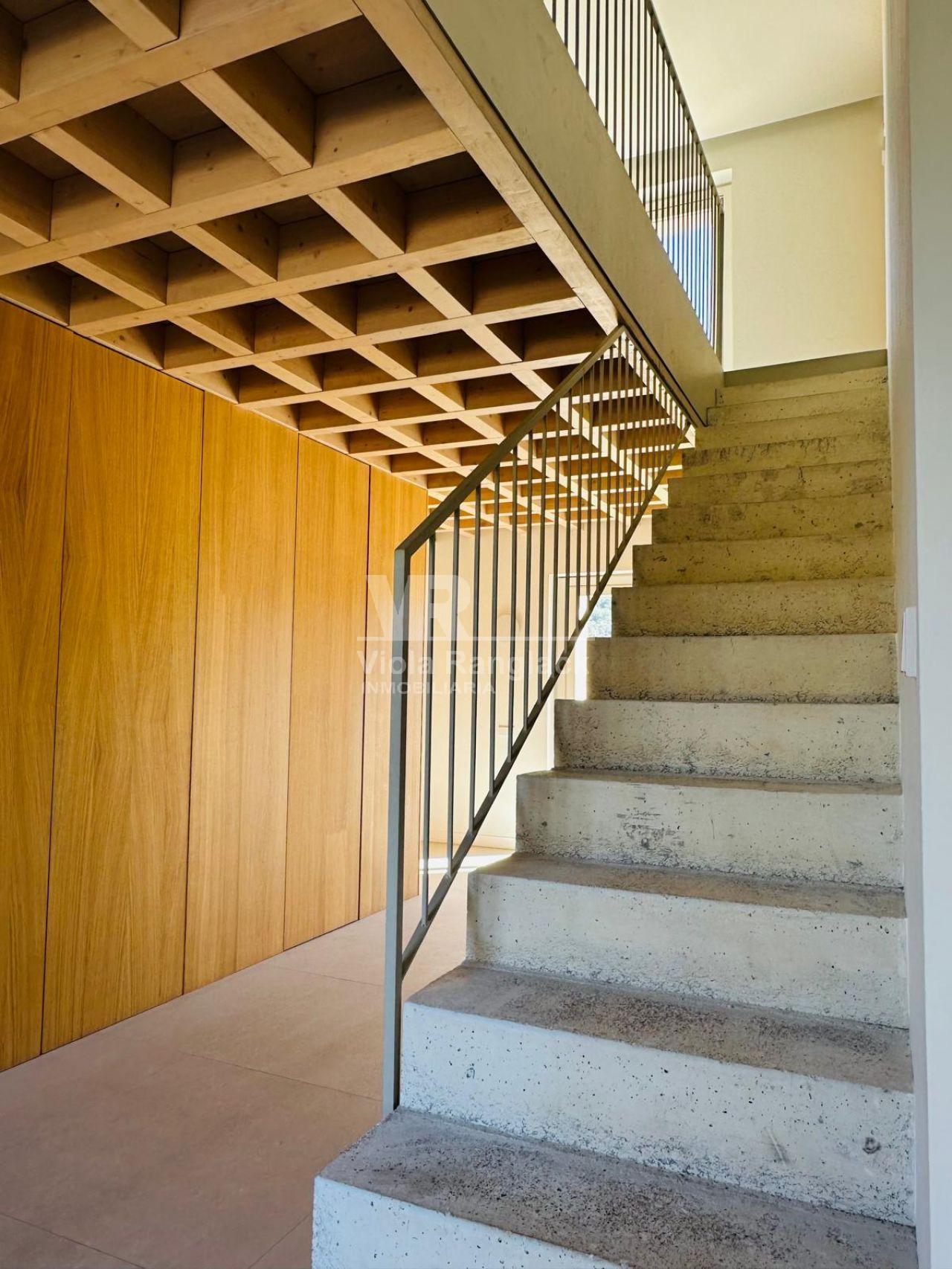 La propiedad destaca por su diseño contemporáneo, líneas limpias y amplios ventanales que inundan cada estancia de luz natural. Dispone de una piscina infinity de sal (4 x 10 m) con vistas despejadas y un agradable porche con vigas de madera mediasombra, ideal para comidas al aire libre.