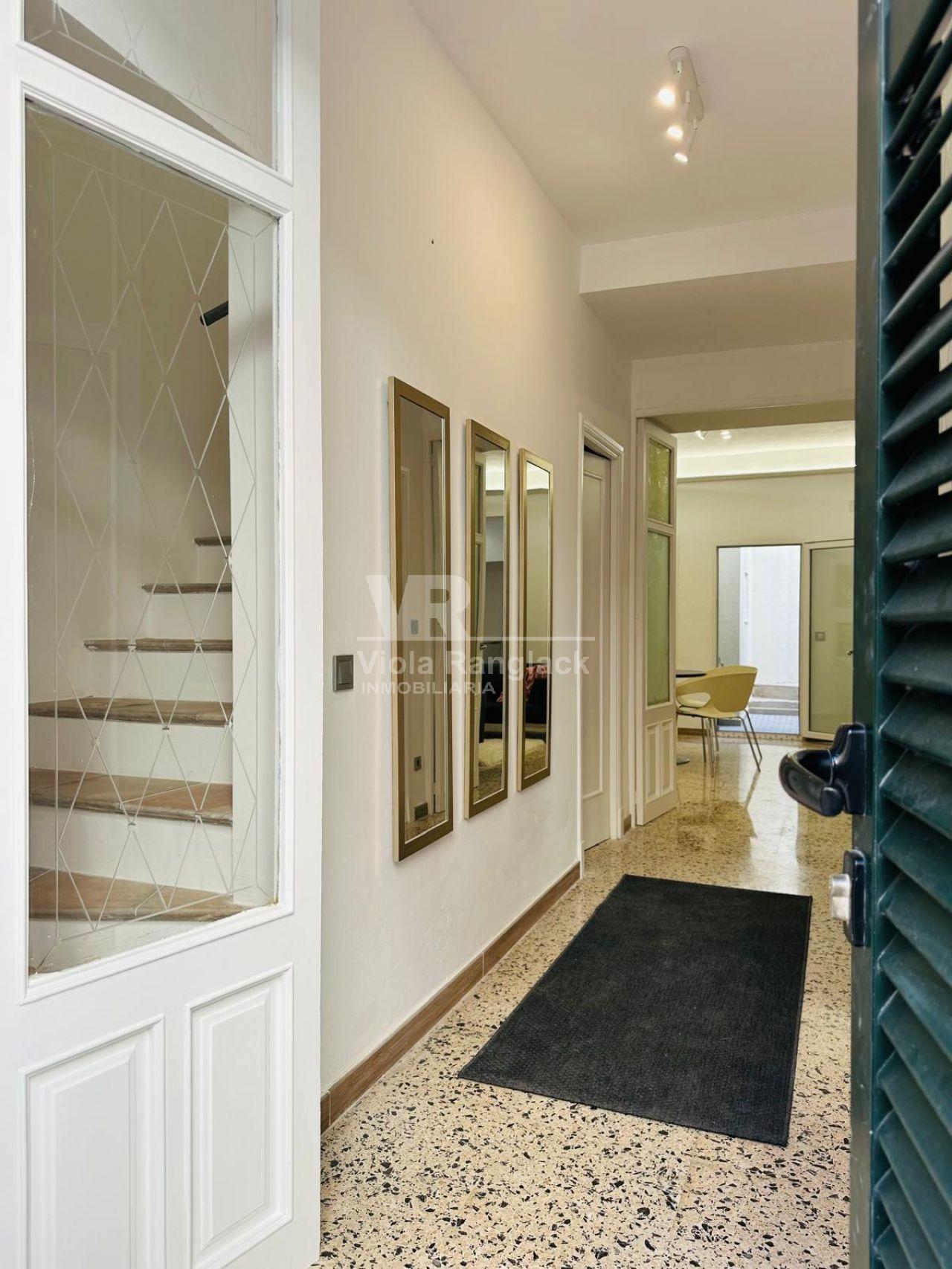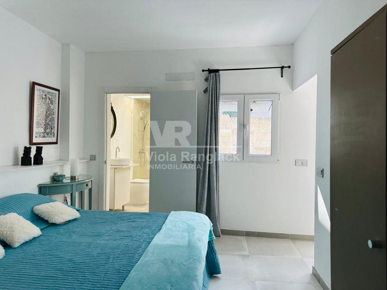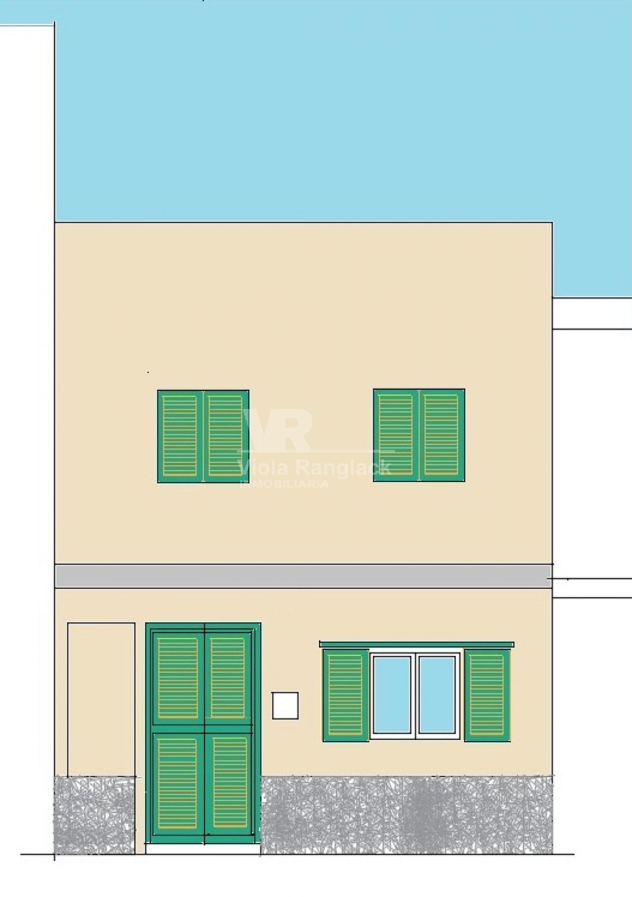 Ground floor: entrance hall and double bedroom on the right with dressing room, storage room, living-dining room and fully equipped kitchen, bathroom with shower and patio.