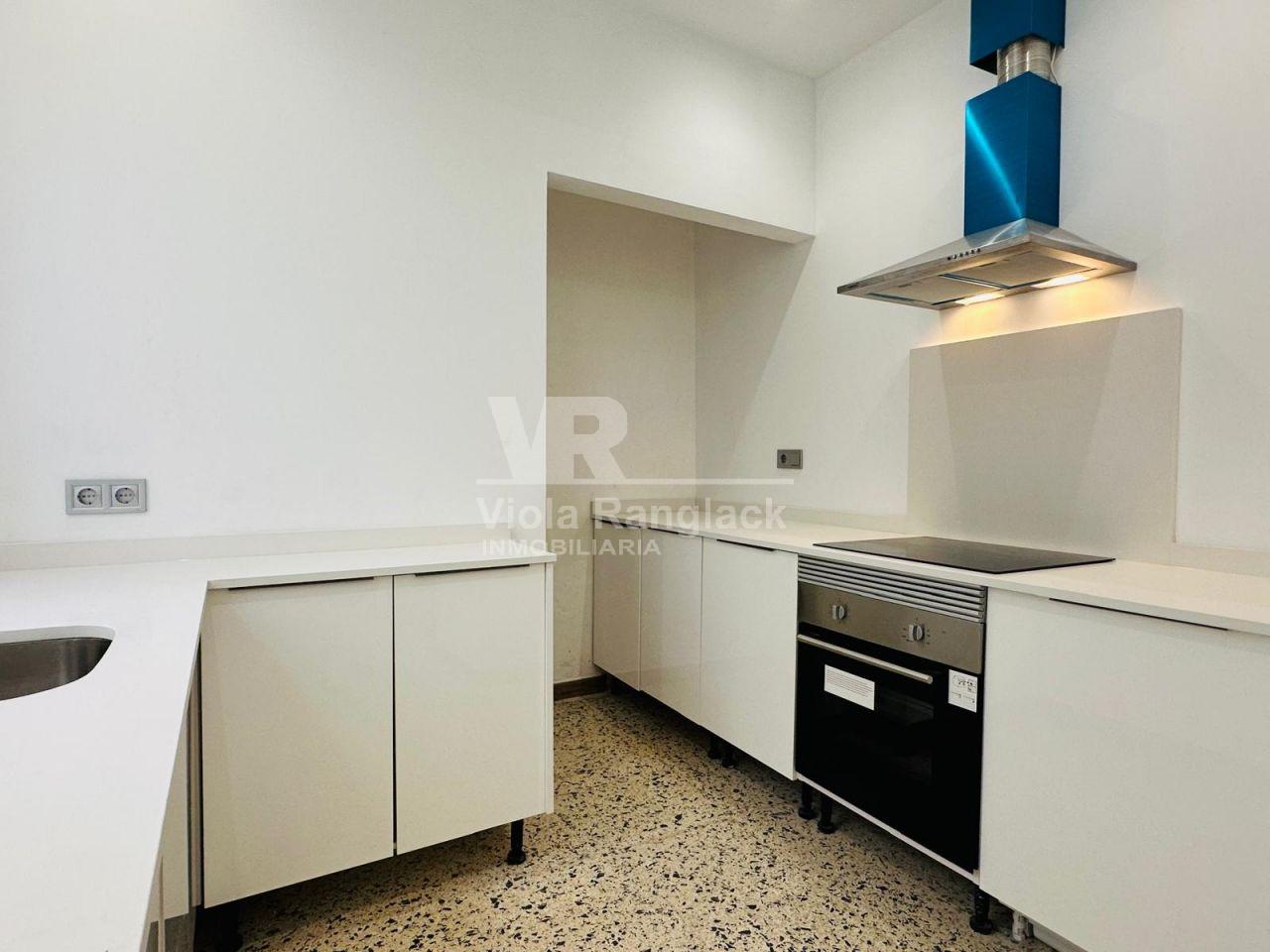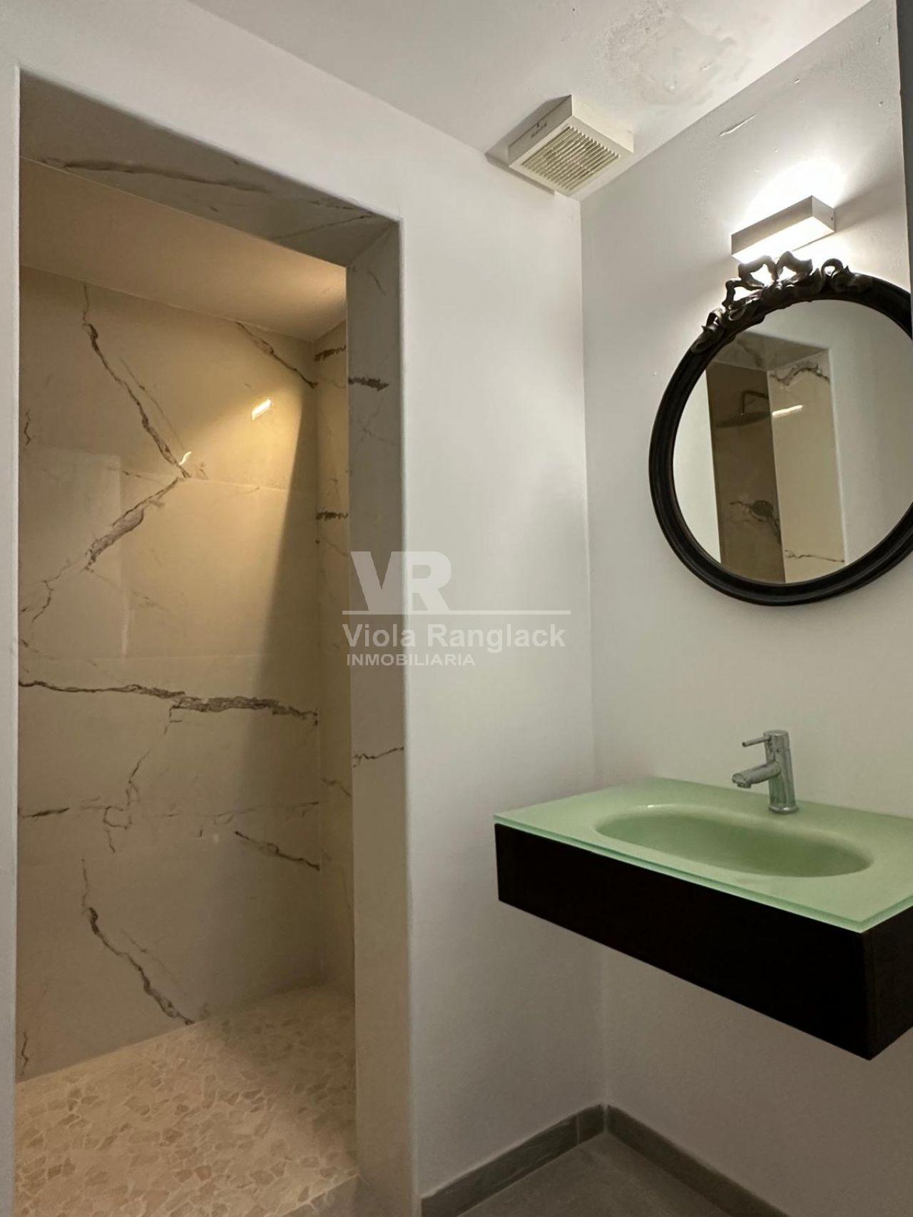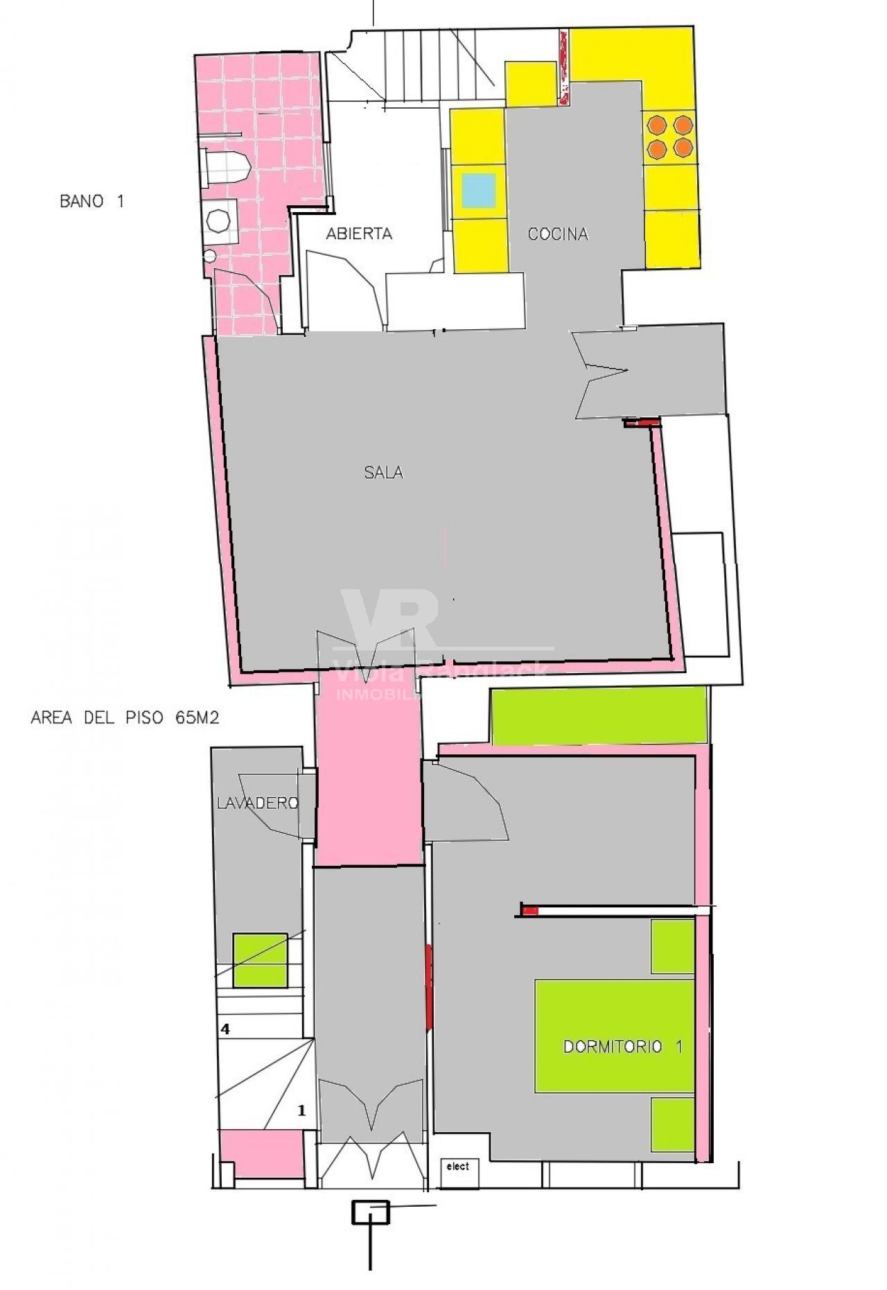 Ground floor: entrance hall and double bedroom on the right with dressing room, storage room, living-dining room and fully equipped kitchen, bathroom with shower and patio.