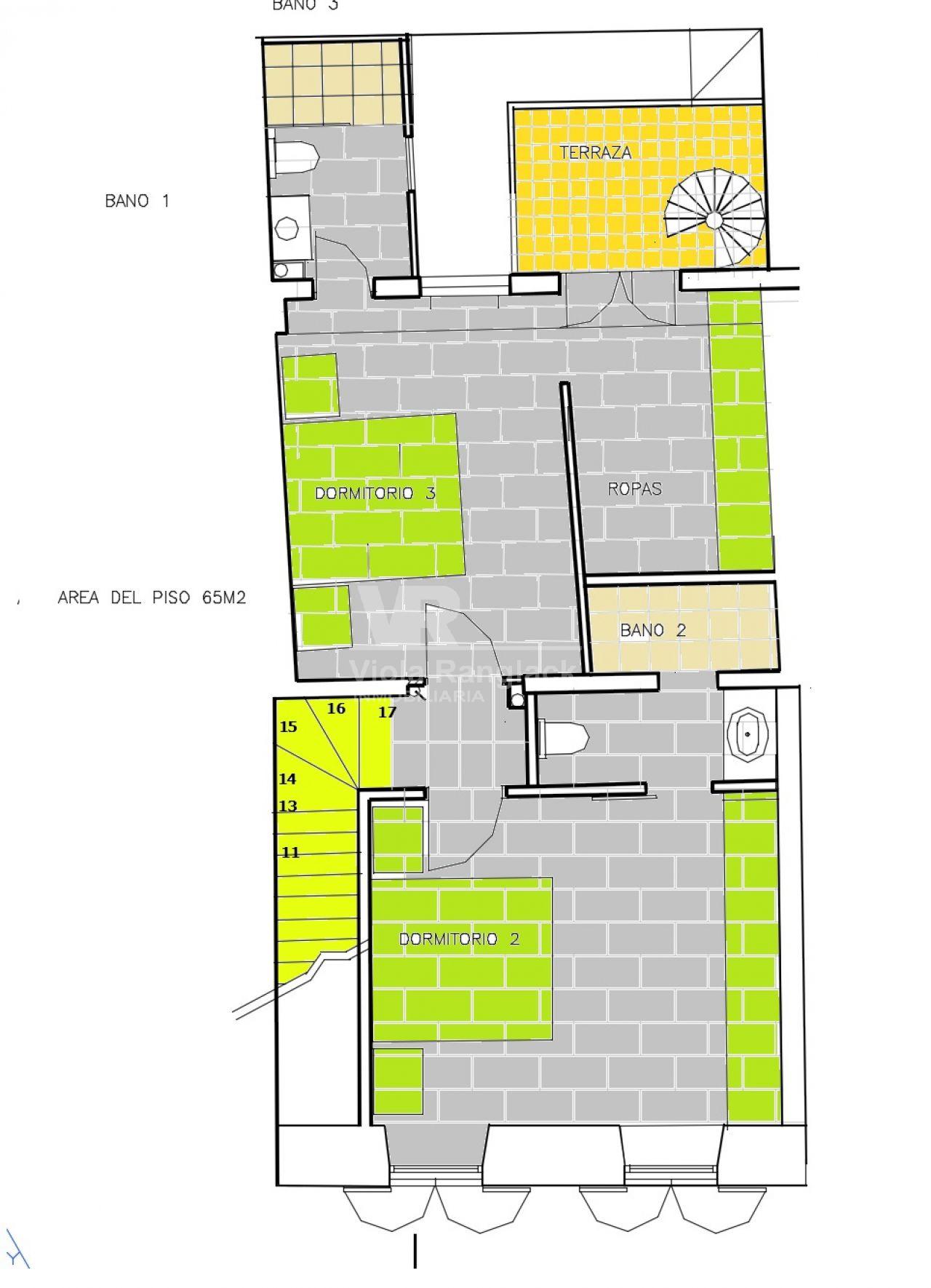First floor: two double bedrooms, each with en-suite bathroom and dressing room. Access via spiral staircase to the roof terrace with beautiful views.