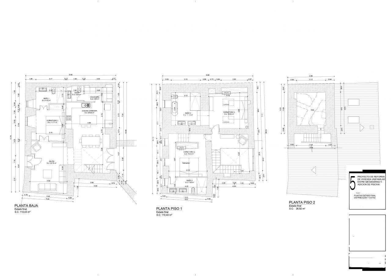 En el proyecto se describe una casa de 3 alturas de unos 325 m2 aproximadamente.