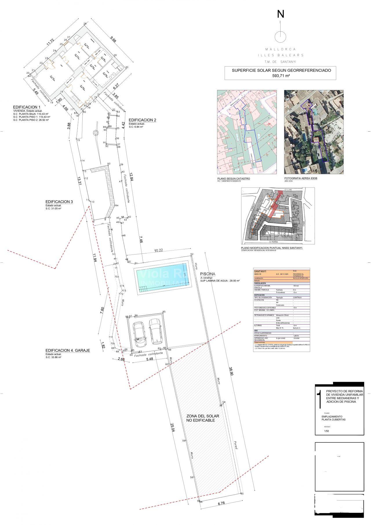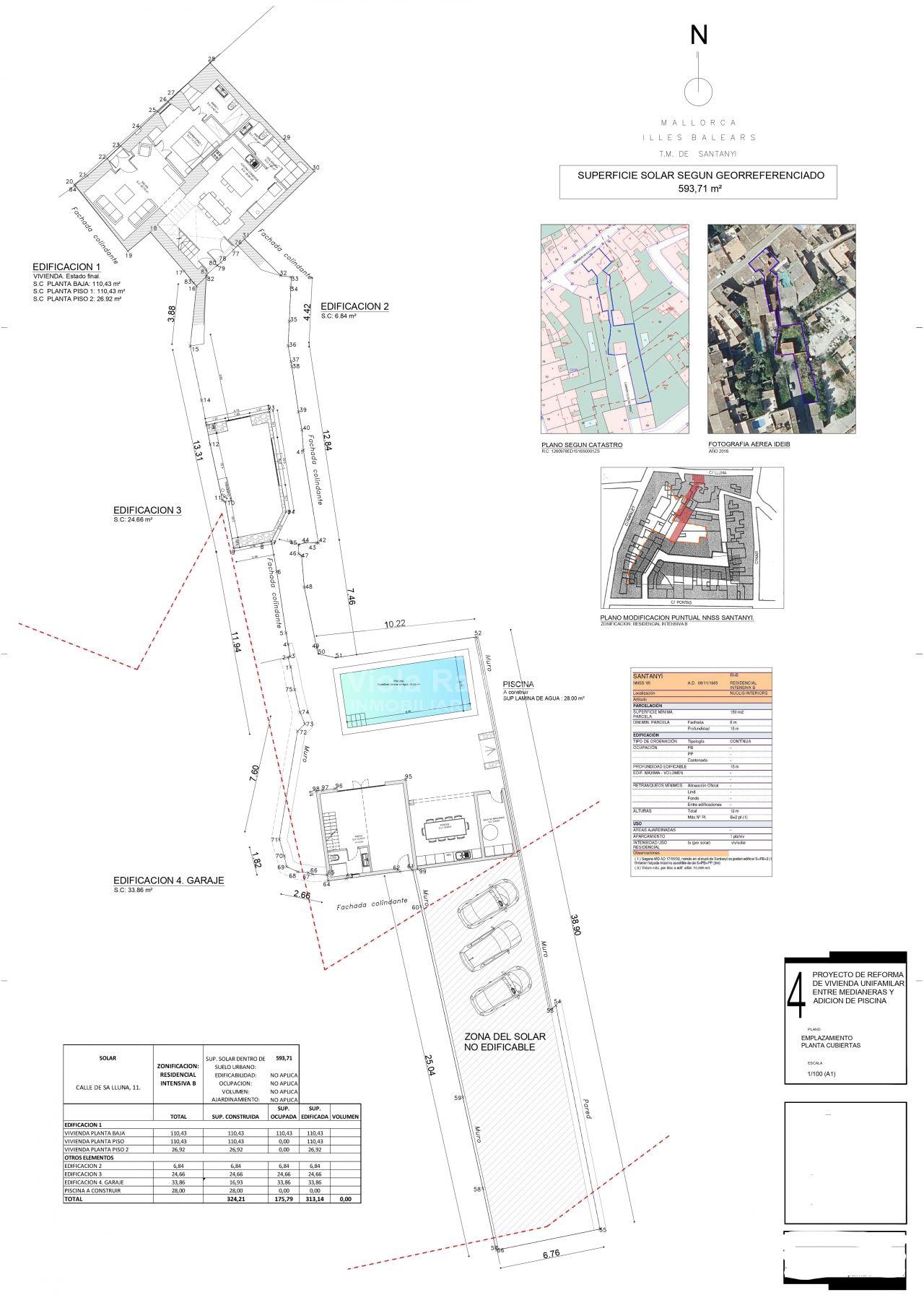 Casa de pueblo en proceso de reforma en el centro del pueblo de Santanyi, en un solar de unos 593m2 y con salida a otra calle, donde se encuentra el garage.