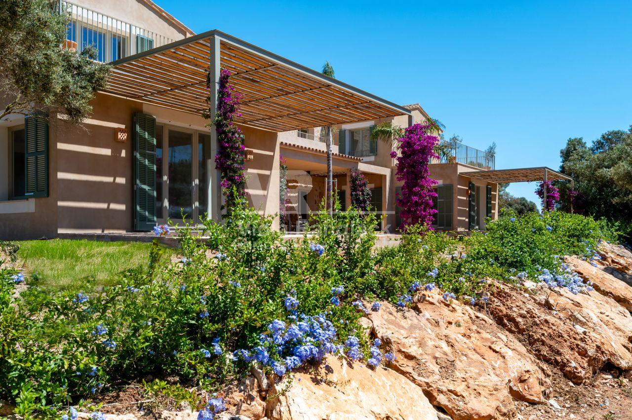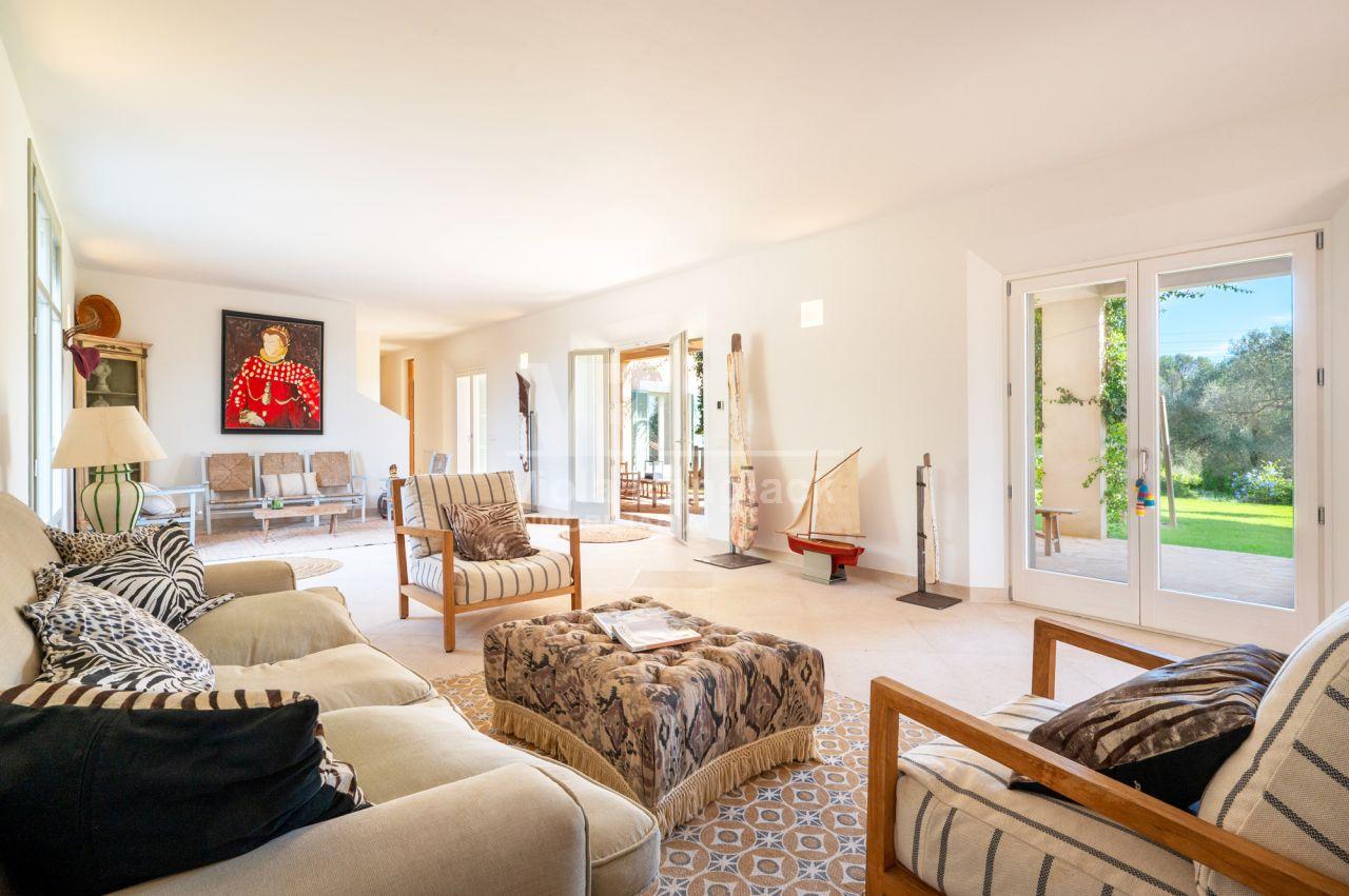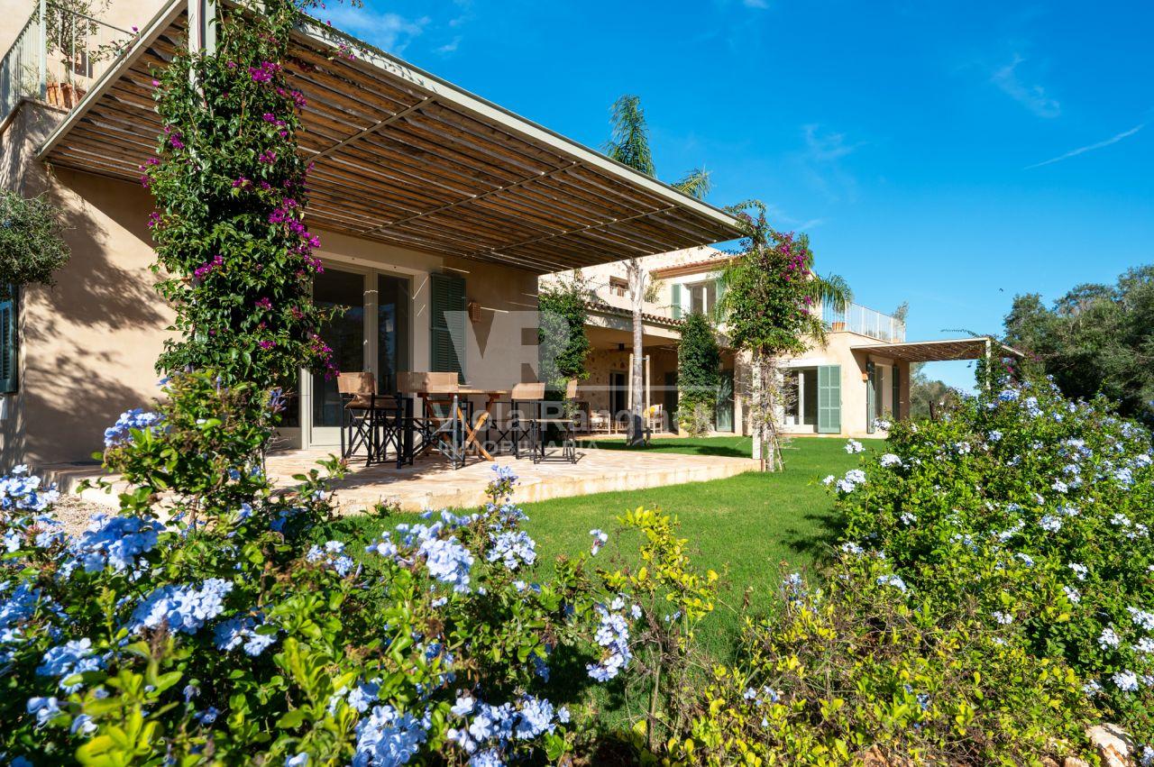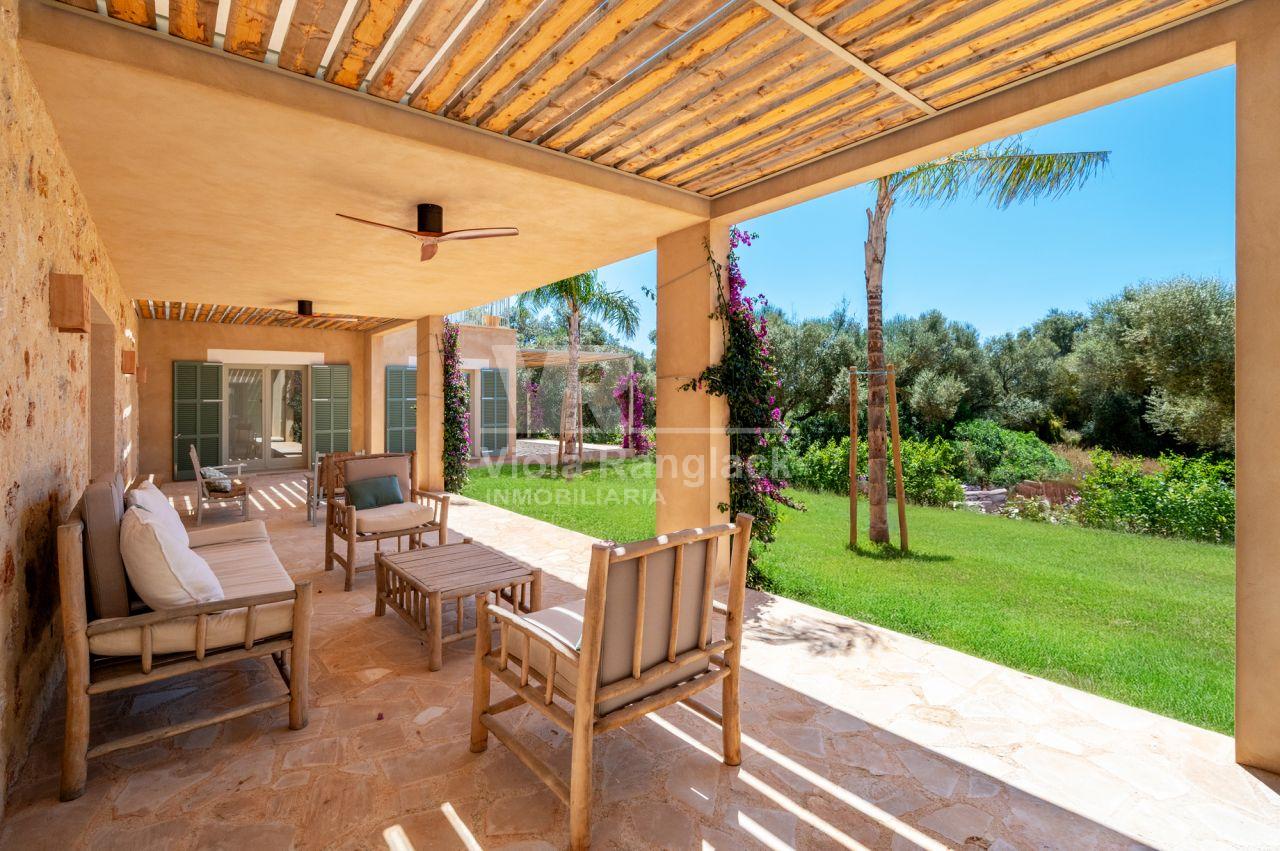 Cerca de las playas de Es Trenc, se encuentra esta finca contemporánea con piscina en una parcela que brinda impresionantes vistas hasta la isla de Cabrera. Construida con los materiales de alta calidad y con elementos tradicionales mallorquines, esta villa promete ser un referente de lujo.