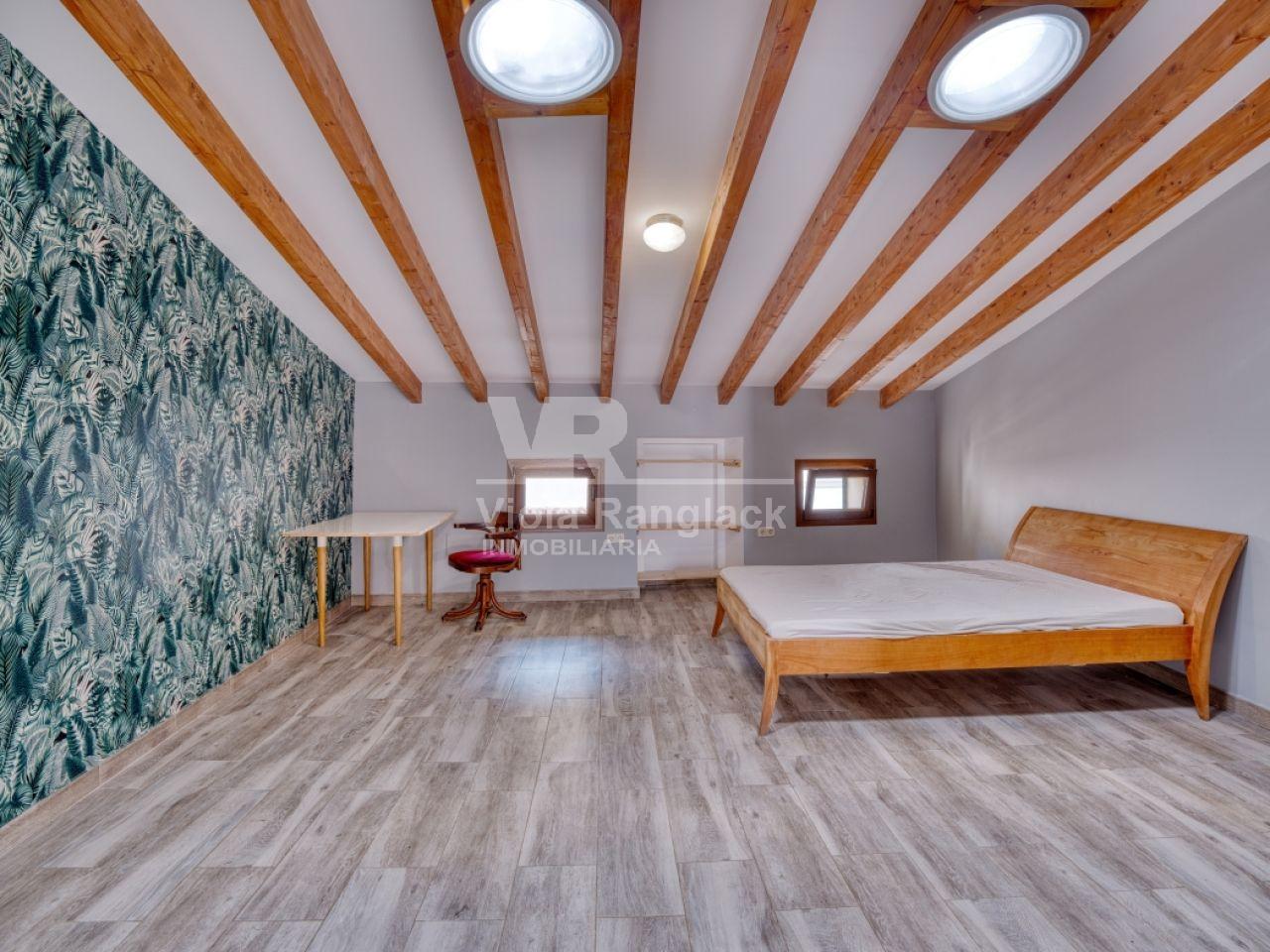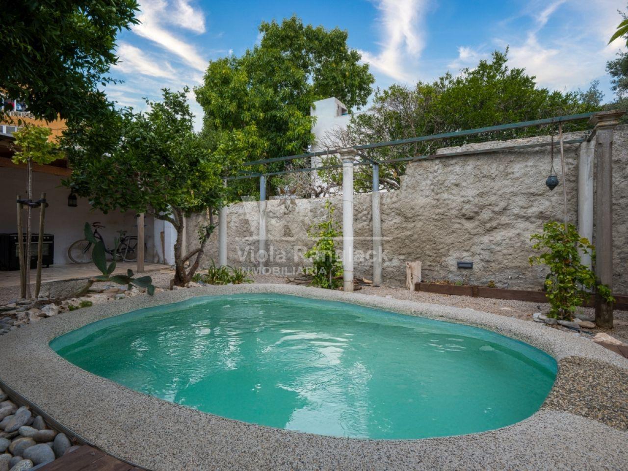 Casa de pueblo con un jardín muy grande y ubicada a pocos metros de la iglesia de Felanitx. La vivienda está distribuida en 3 plantas y hay 301m2 construidos y aproximadamente 280m2 de suelo. 4 dormitorios, 2 baños y varias salas, cocina con salida al patio. Hay varias terrazas.