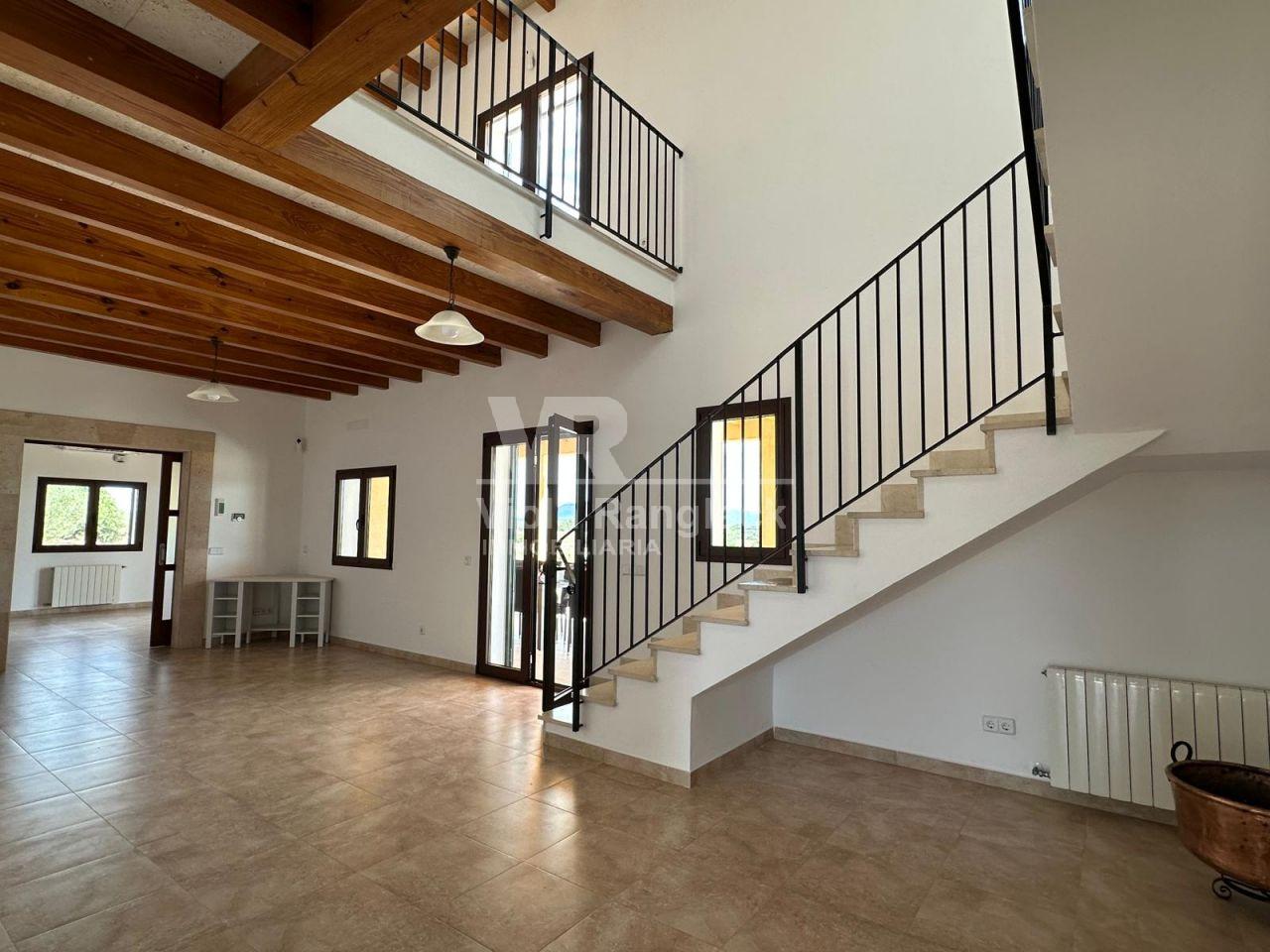 Una hermosa escalera nos lleva al altillo de la primera planta, donde encontramos otra espaciosa sala de estar con un sofá, un televisor y acceso a la terraza con vistas a la piscina y al campo. 2 dormitorios dobles con armarios empotrados ( uno de ellos con salida a gran terraza trasera con acceso directo mediante escalera independiente), un precioso baño con bañera y ducha.