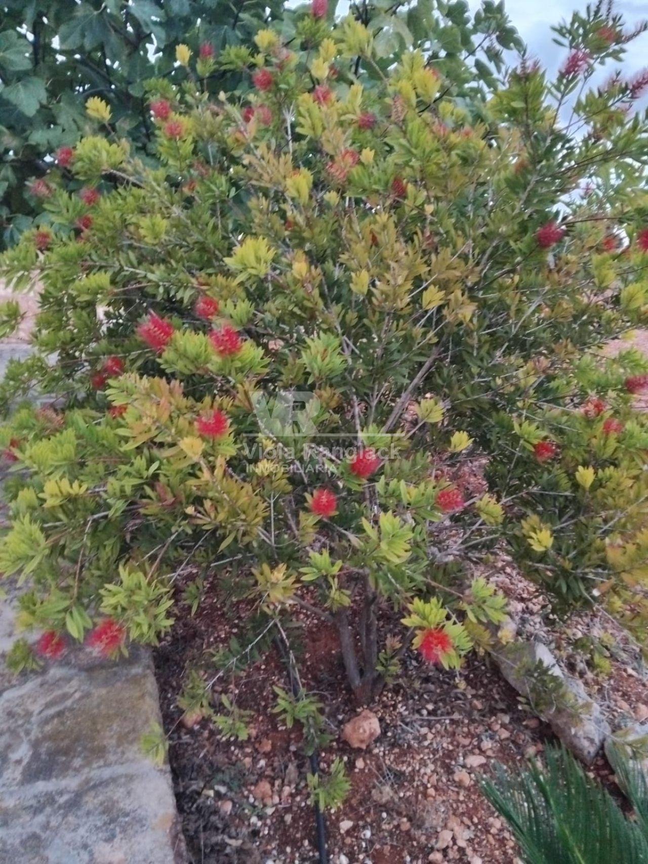 La casa está rodeada por una terraza y un jardín de unos 1.000m2 aprox., con amplias vistas sobre el campo. La piscina de sal mide 8 X 5, con una profundidad de 1.80 m y tiene una escalera de obra para entrar cómodamente. Hay una ducha exterior y una barbacoa de obra.