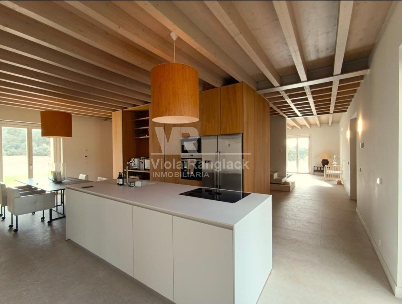 La propiedad destaca por su diseño contemporáneo, líneas limpias y amplios ventanales que inundan cada estancia de luz natural. Dispone de una piscina infinity de sal (4 x 10 m) con vistas despejadas y un agradable porche con vigas de madera mediasombra, ideal para comidas al aire libre.