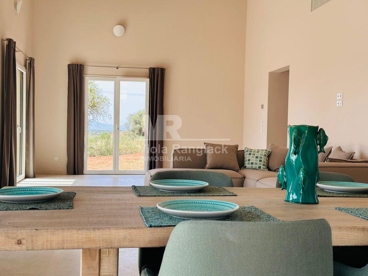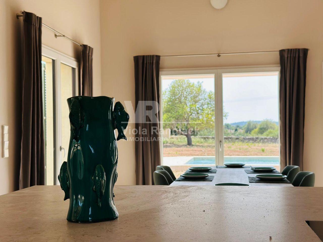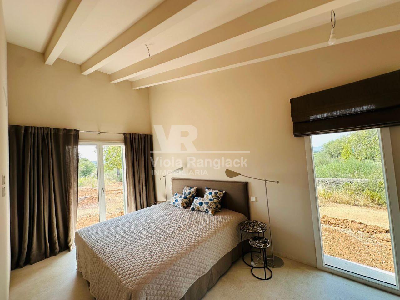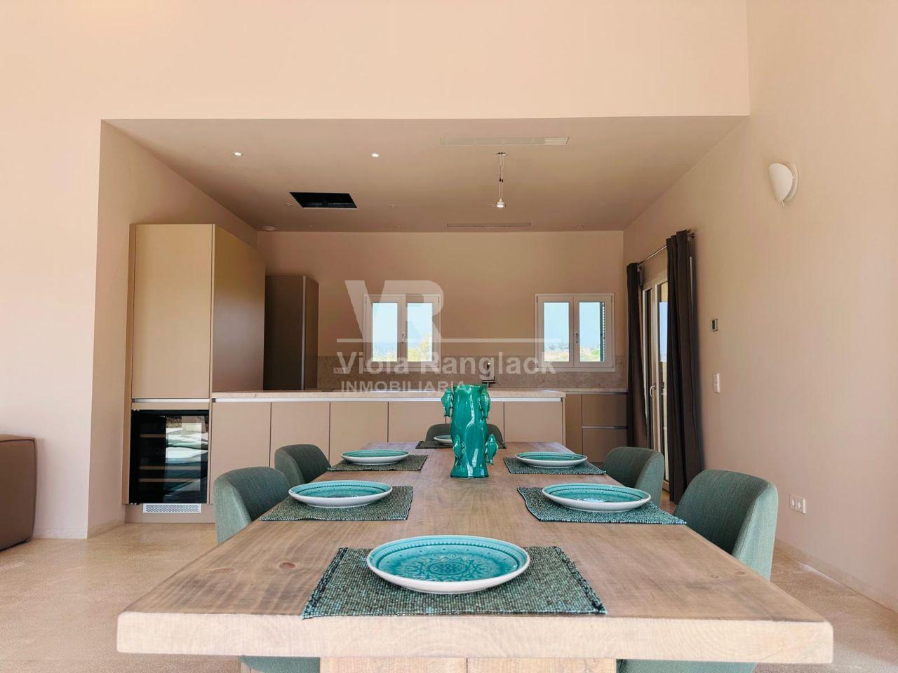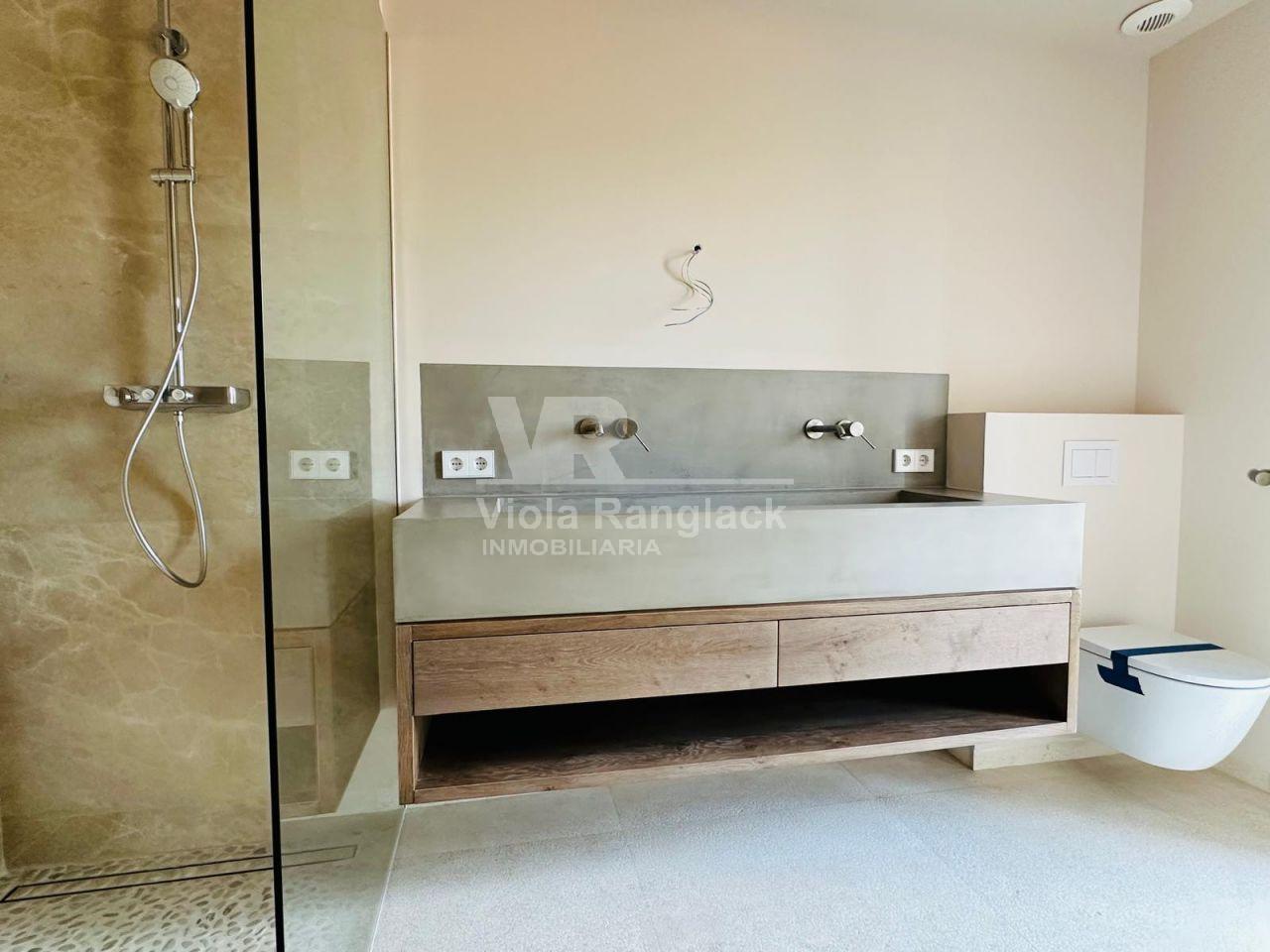 Bomba de calor de fuente de aire, calefacción por suelo radiante, aire acondicionado, suelos de piedra natural, armarios empotrados, puertas de madera maciza con huecos de sombra, domótica con sistema de alarma, puerta de entrada eléctrica con vigilancia por cámara, cocina equipada con electrodomésticos empotrados Miele incl. enfriador de vino, acabado de pintura con pintura Anna von Mangoldt, grifos Grohe, fregaderos de mampostería con microcemento, chimenea, piscina de 12x5 m con sistema de agua salada.
