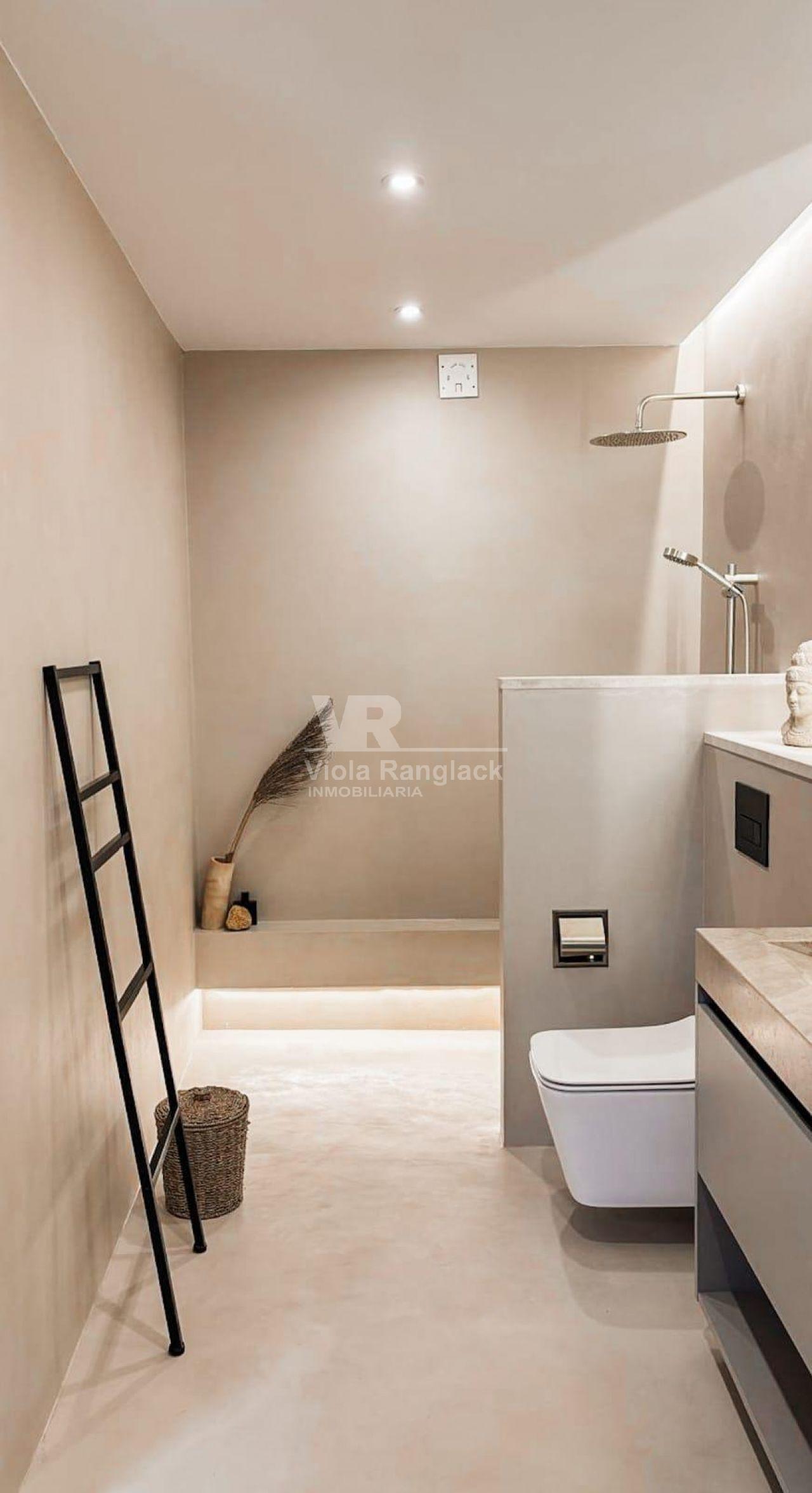 Los suelos son una hermosa combinación de piedra natural, mármol y microcemento, que confieren a los espacios un aspecto moderno y elegante.