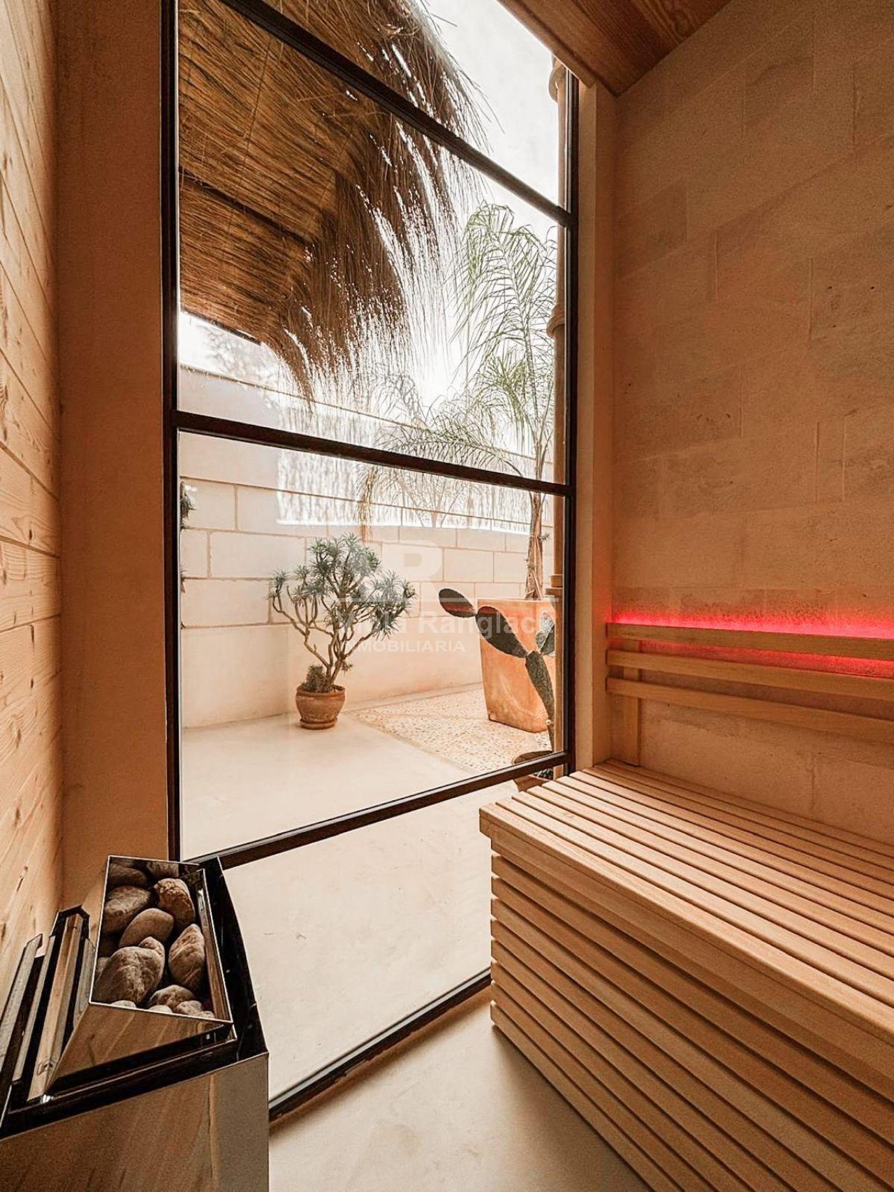 Al entrar, le da la bienvenida un amplio pasillo que da acceso a tres dormitorios, cada uno con su propio cuarto de baño y aseo para la comodidad y la privacidad óptima, así como grandes armarios empotrados. El dormitorio principal cuenta con una lujosa sauna doble y acceso directo al patio. Dos de los dormitorios están equipados con aire acondicionado y calefacción para mayor comodidad durante todo el año.