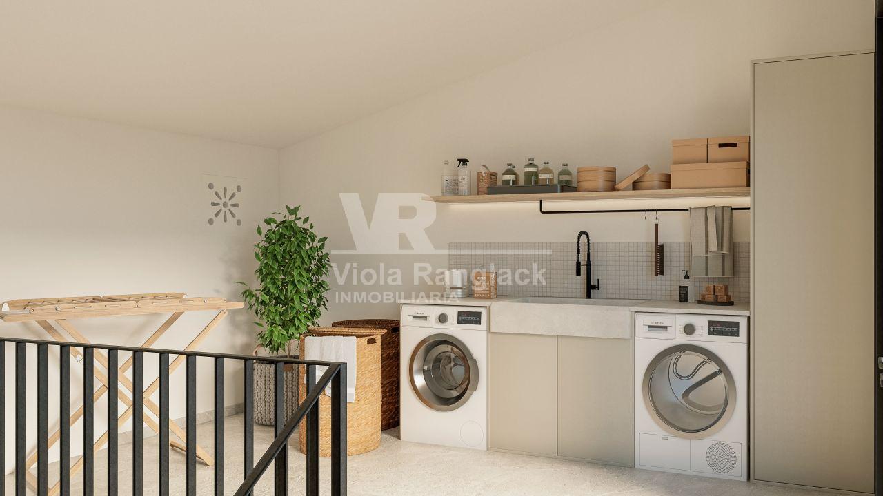 El nivel superior ofrece un área multifuncional que puede adaptarse a diferentes usos. Actualmente se destina a trastero y coladuría, pero también podría transformarse en una oficina privada, una zona de gimnasio o un estudio creativo. Desde aquí se accede a una terraza soleada, ideal para disfrutar del clima mediterráneo o como área práctica para el cuidado del hogar.