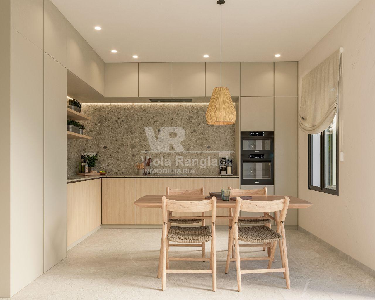Al ingresar, se encuentra un recibidor que conecta con una amplia cocina de concepto abierto. La cocina, equipada con mobiliario moderno, se une a un acogedor comedor, creando un espacio ideal para reuniones familiares o entre amigos. El salón, lleno de luz natural gracias a sus amplios ventanales, tiene acceso directo a un encantador patio interior, un lugar perfecto para desconectar o disfrutar de cenas al aire libre.
