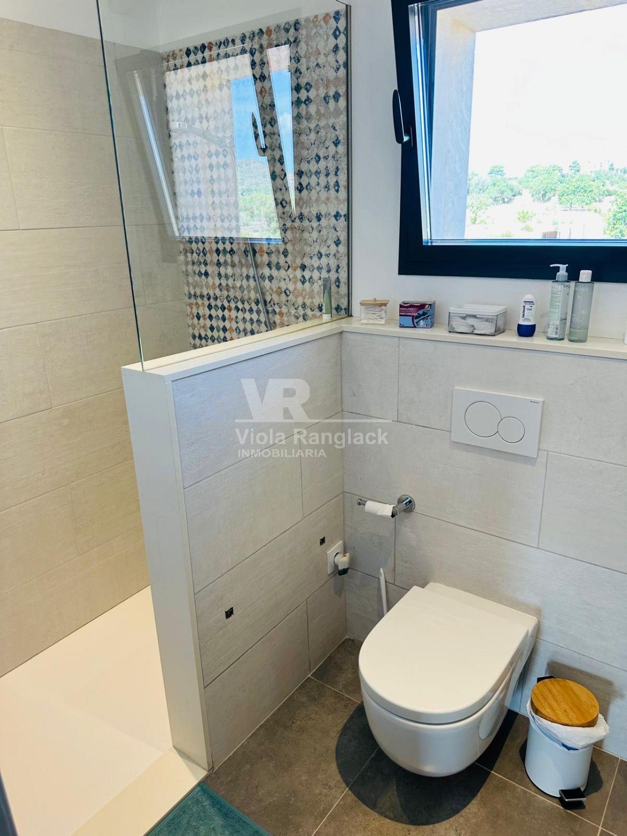 Auf der Außenseite gibt es eine große Veranda mit allen Annehmlichkeiten, direkt vor der Veranda befindet sich der große Swimmingpool mit den Maßen 8,5m x 4,5m und mit Meerblick und Obstbäumen. Zurück im Haus, die Treppe hinauf, finden Sie den Flur, 3 Doppelschlafzimmer, 2 davon mit gemeinsamem Bad, und das Hauptschlafzimmer, mit großem kompletten Bad (Dusche und Badewanne) en suite, Ankleideraum und eine spektakuläre Terrasse mit unglaublichem Blick auf das Meer und die Berge.