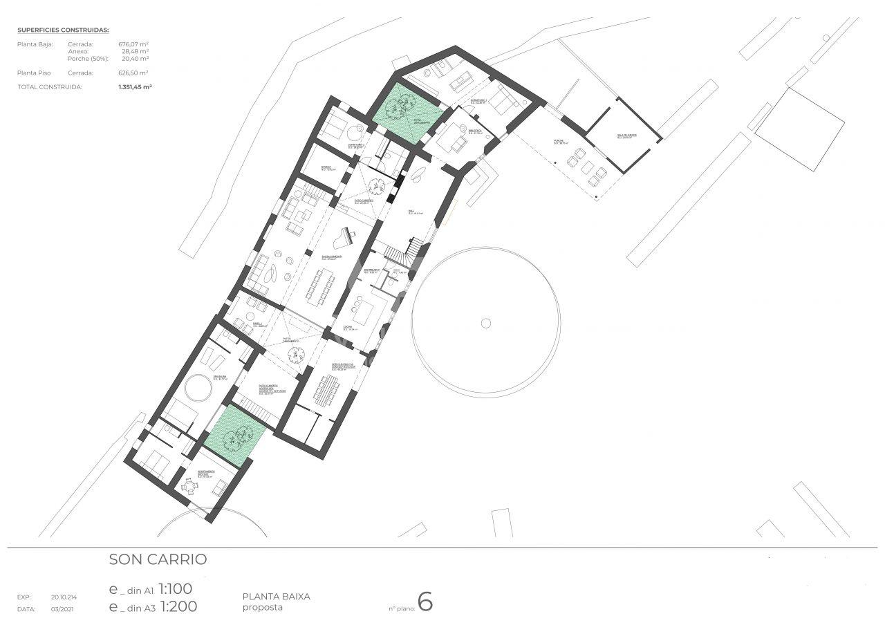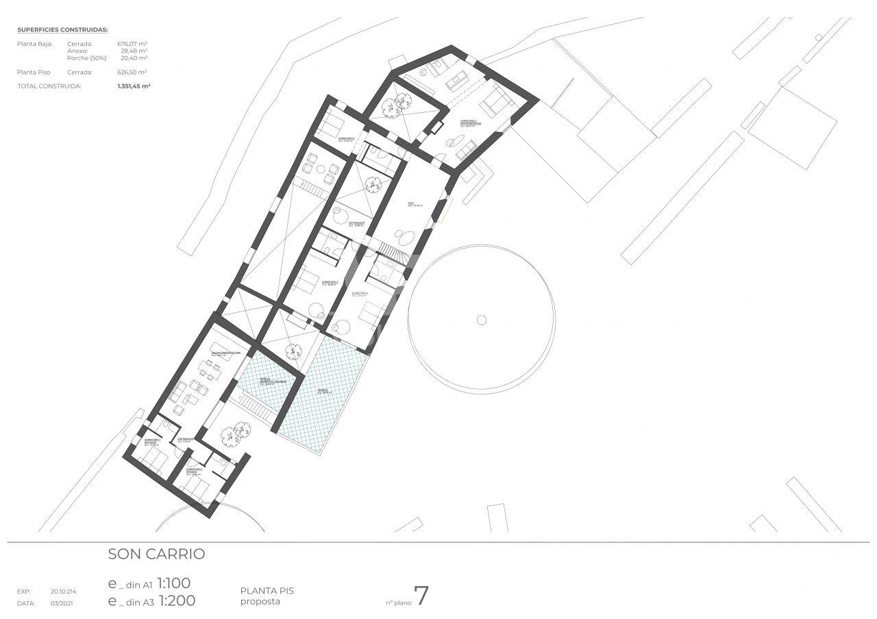 Currently it has a project where the main house is formed by several noble spaces, service areas, several patios, 5 double bedrooms with bathroom, 1 double bedroom with bathroom, dressing room and interior living room, library, reading room, barbecue area and outdoor dining room...