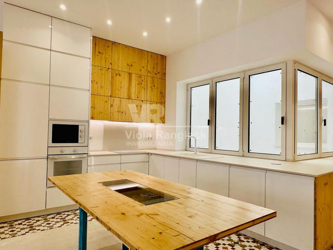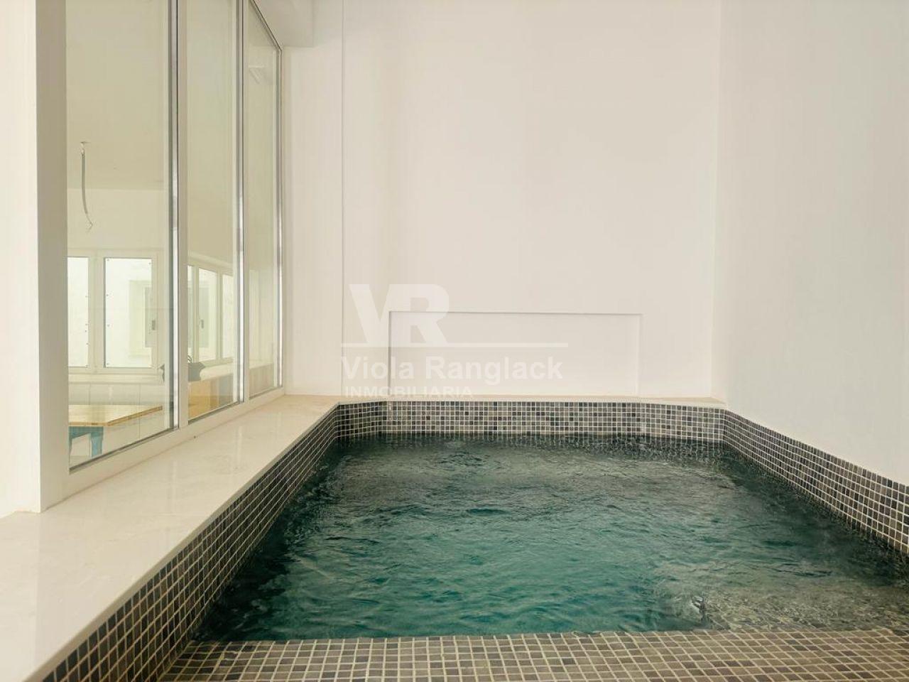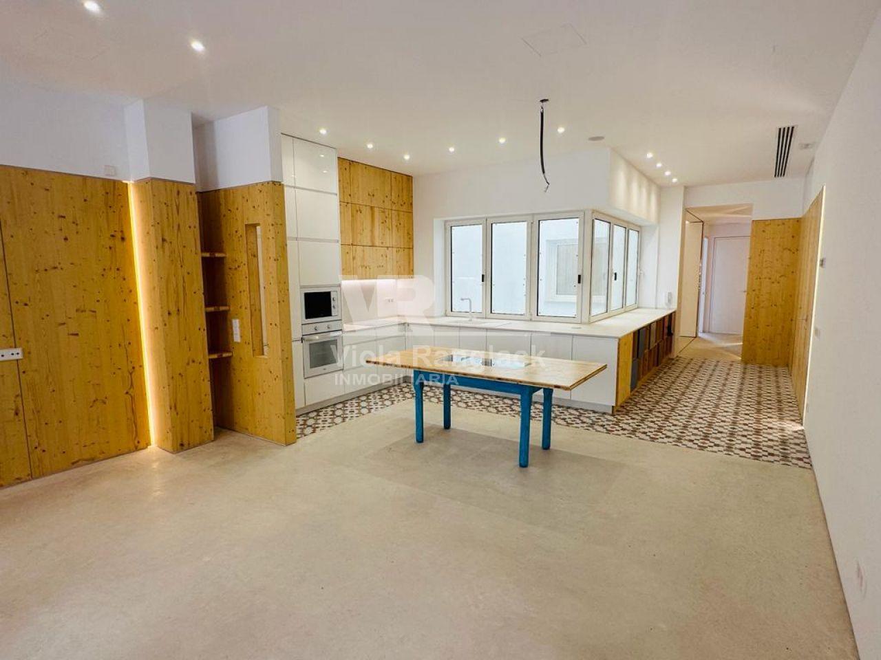 It has about 110 m2 and completely renovated. It has three bedrooms and two bathrooms, one of them en suite.