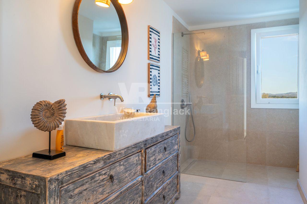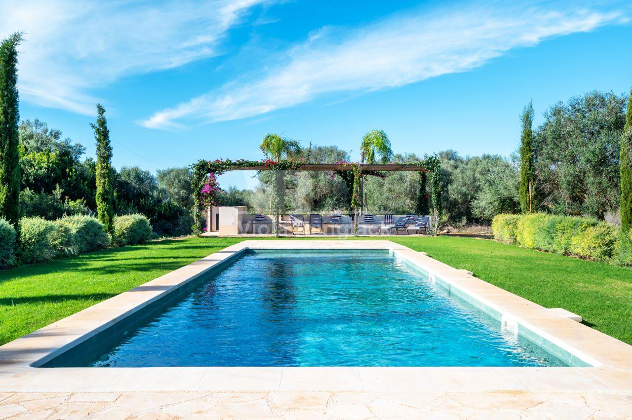 This modern property with a swimming pool is located near Es Trenc beach, on a plot offering views to the island of Cabrera. Built with high-quality materials and traditional Mallorcan elements, this villa promises to set a new standard in luxury.