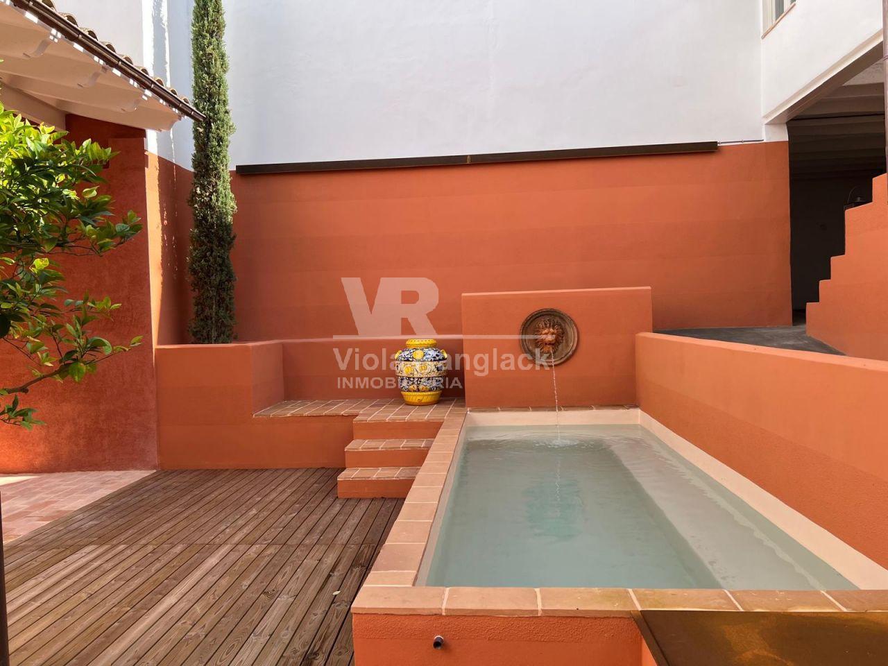 Gran patio con comoda fuente , trastero, y garaje con sitio para dos coches que da a la calle de atrás.